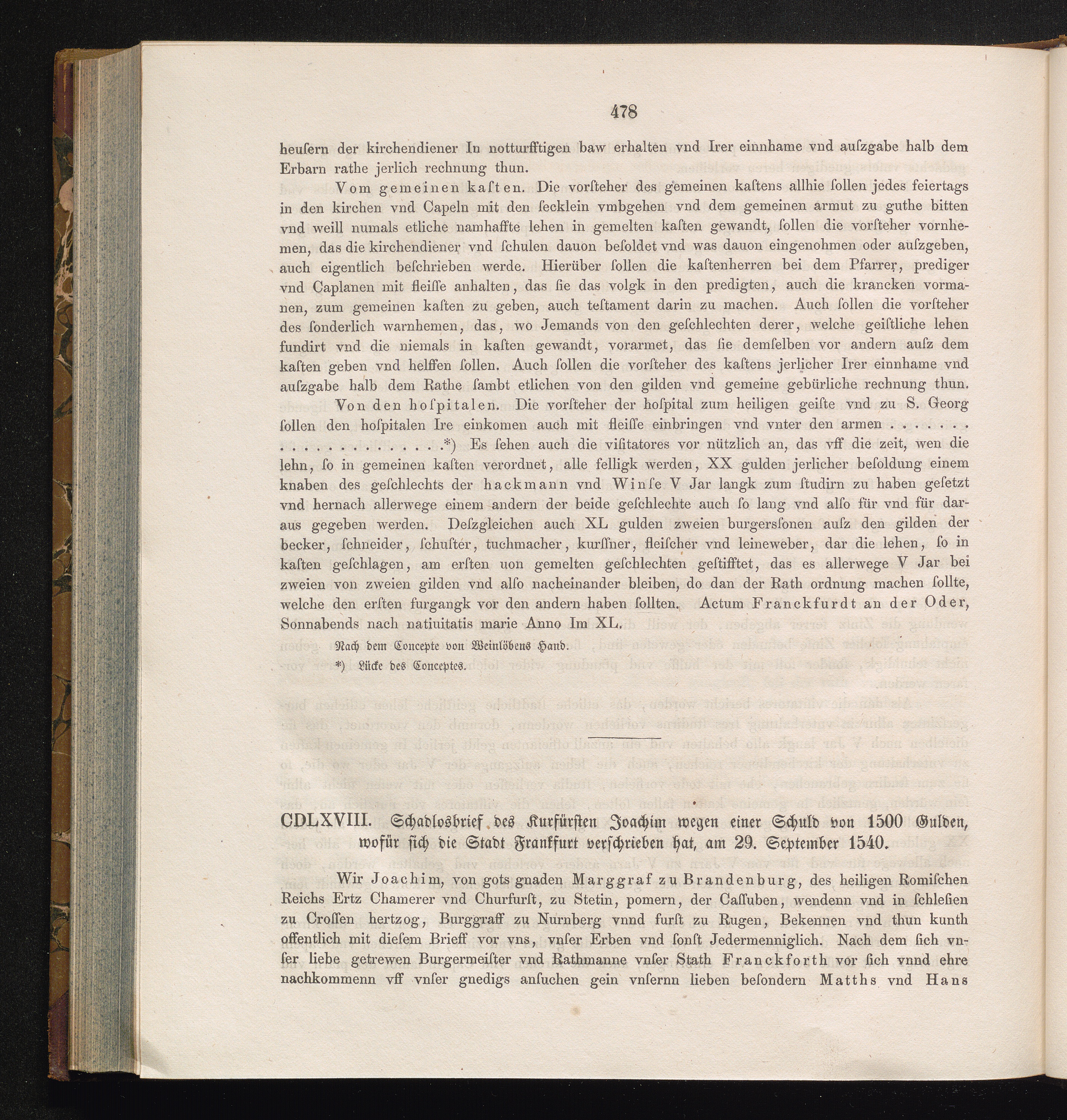 CDLXVIII. Schadlosbrief des Kurfürsten Joachim wegen einer Schuld von 1500 Gulden,[...]