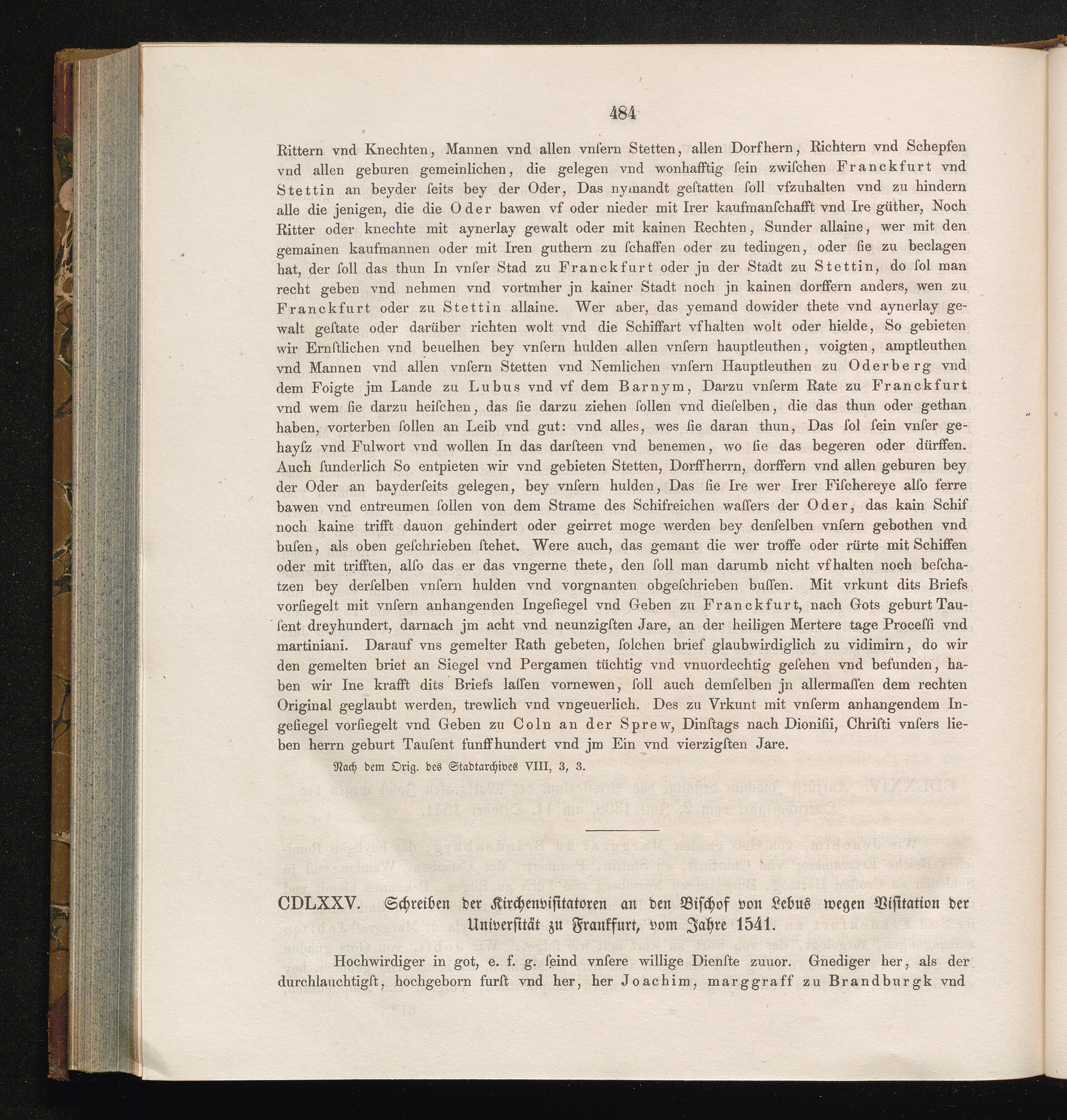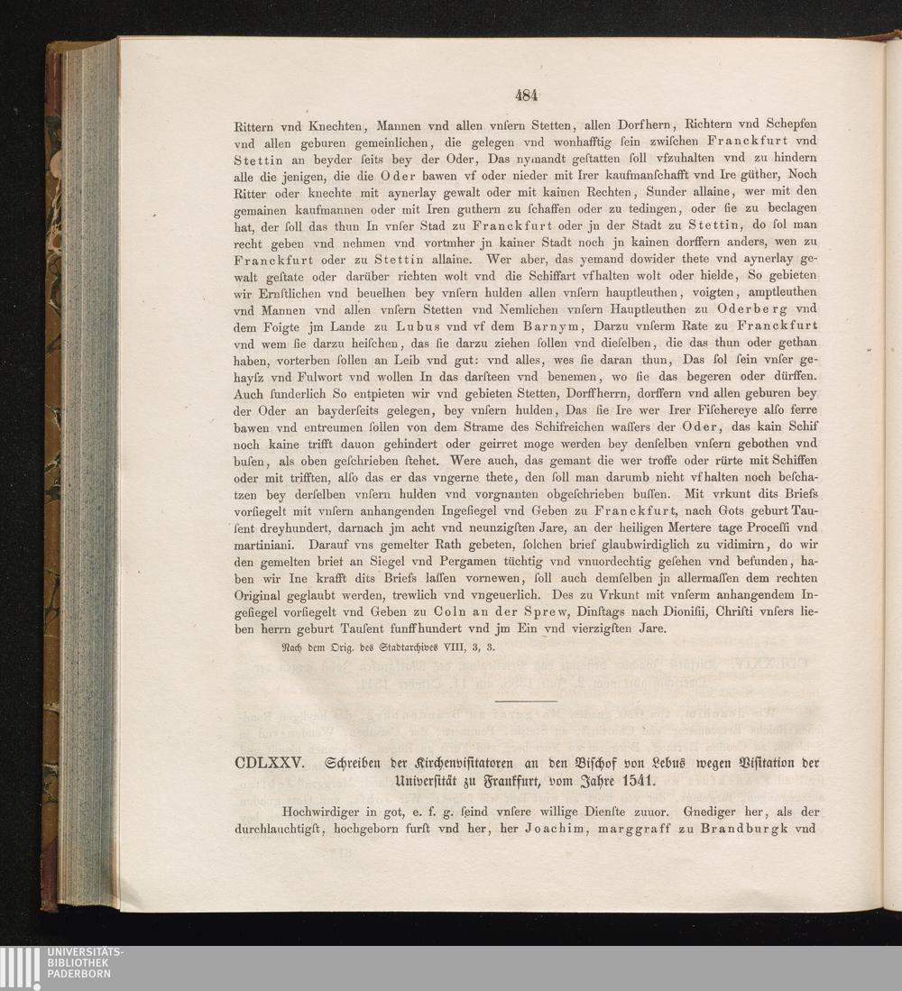 CDLXXV. Schreiben der Kirchenvisitatoren an den Bischof von Lebus wegen Visitation[...]