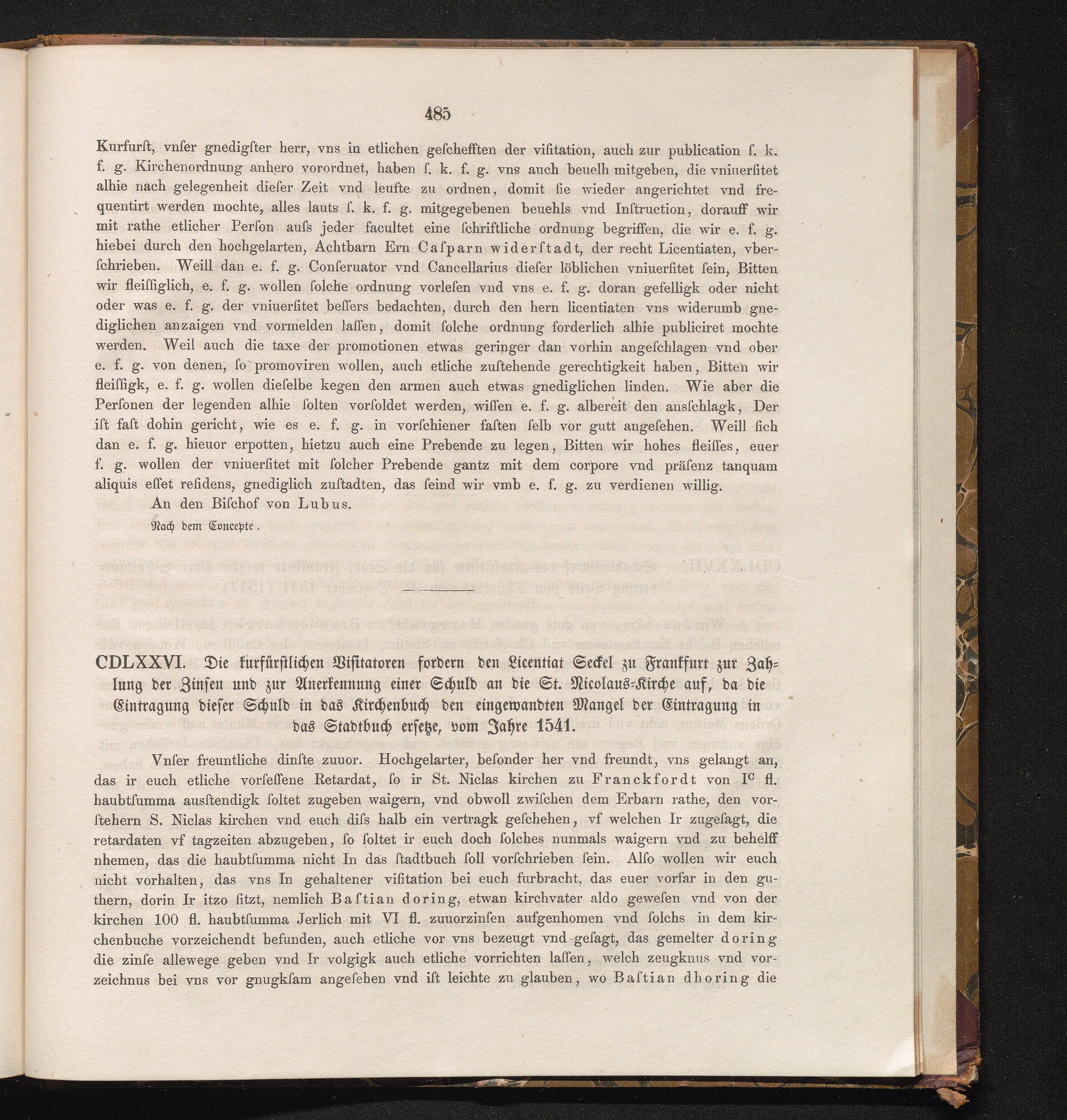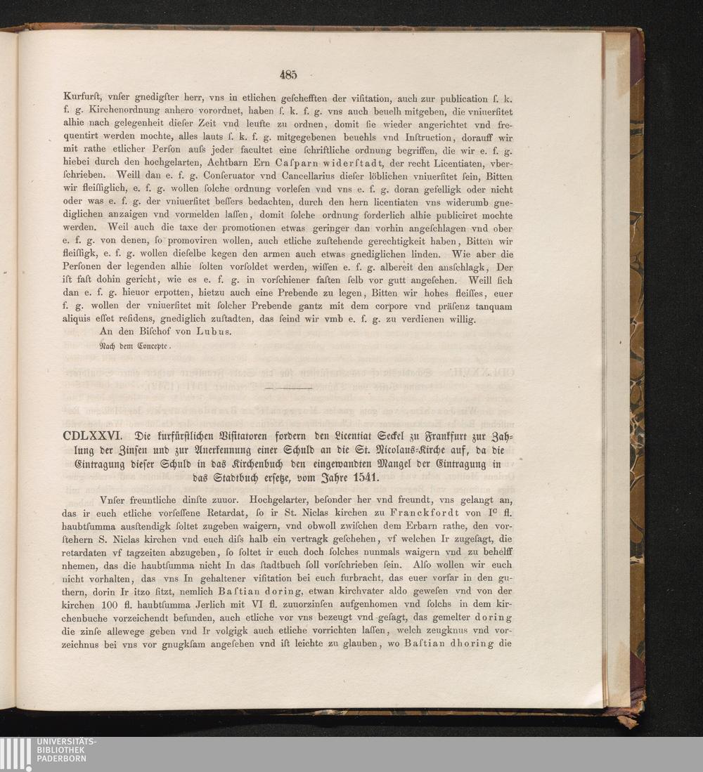 CDLXXVI. Die kurfüstlichen Visitatoren fordern den Licentiat Seckel zu Frankfurt[...]