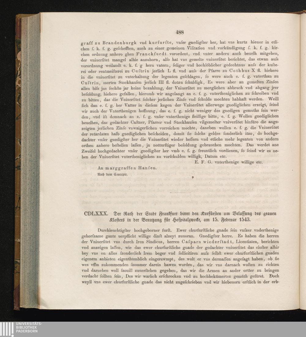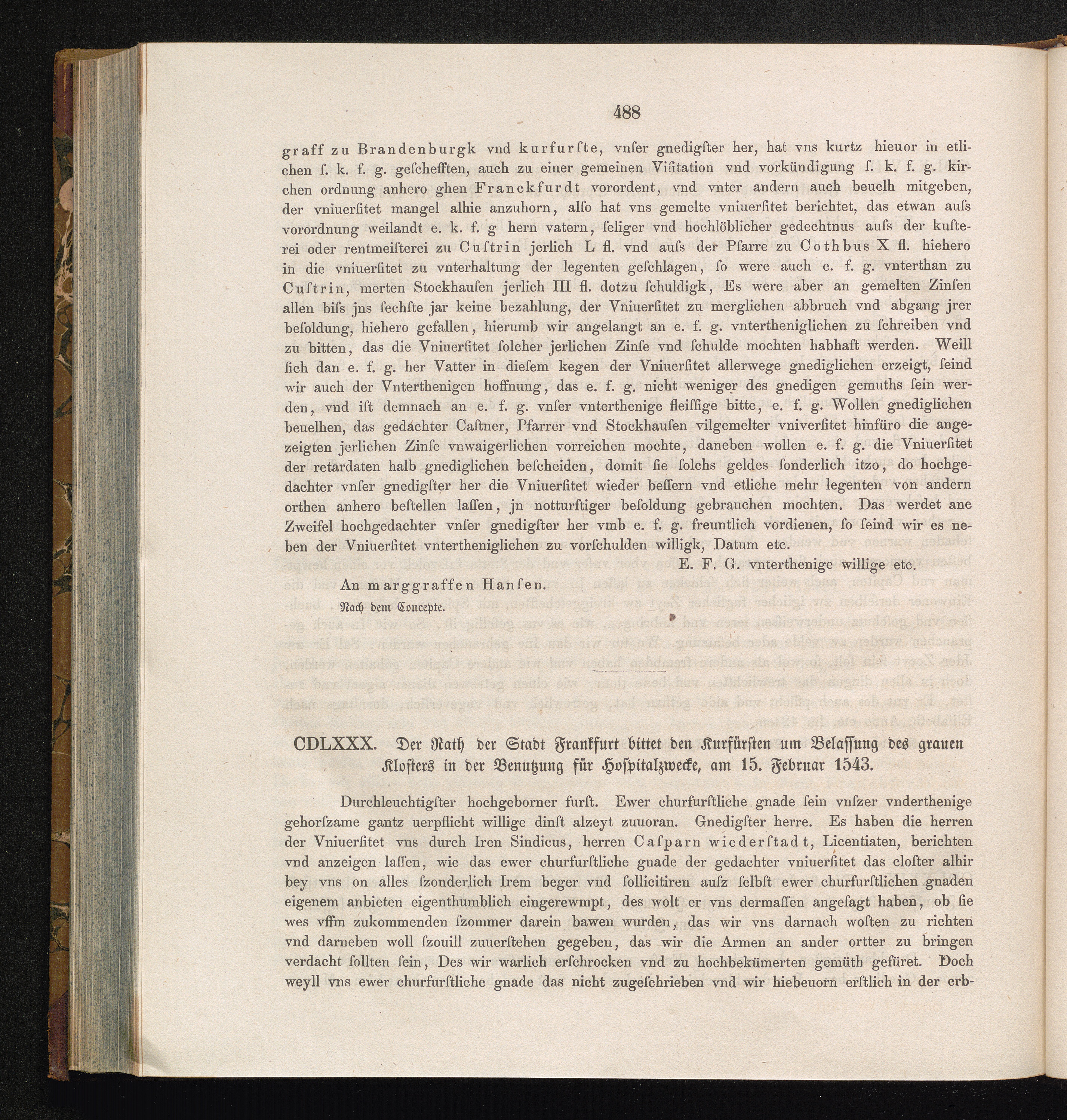 CDLXXX. Der Rath der Stadt Frankfurt bittet den Kurfürsten um Belassung des grauen[...]