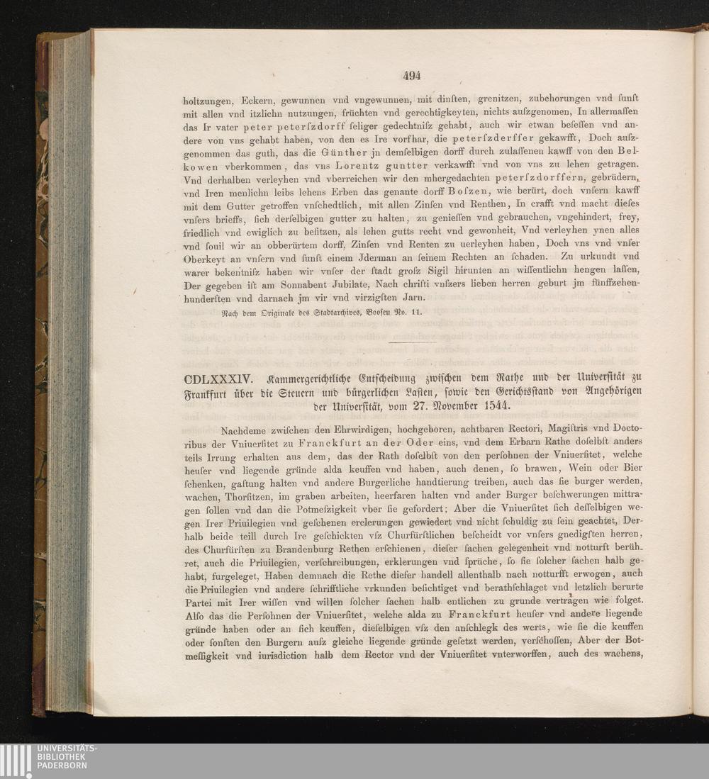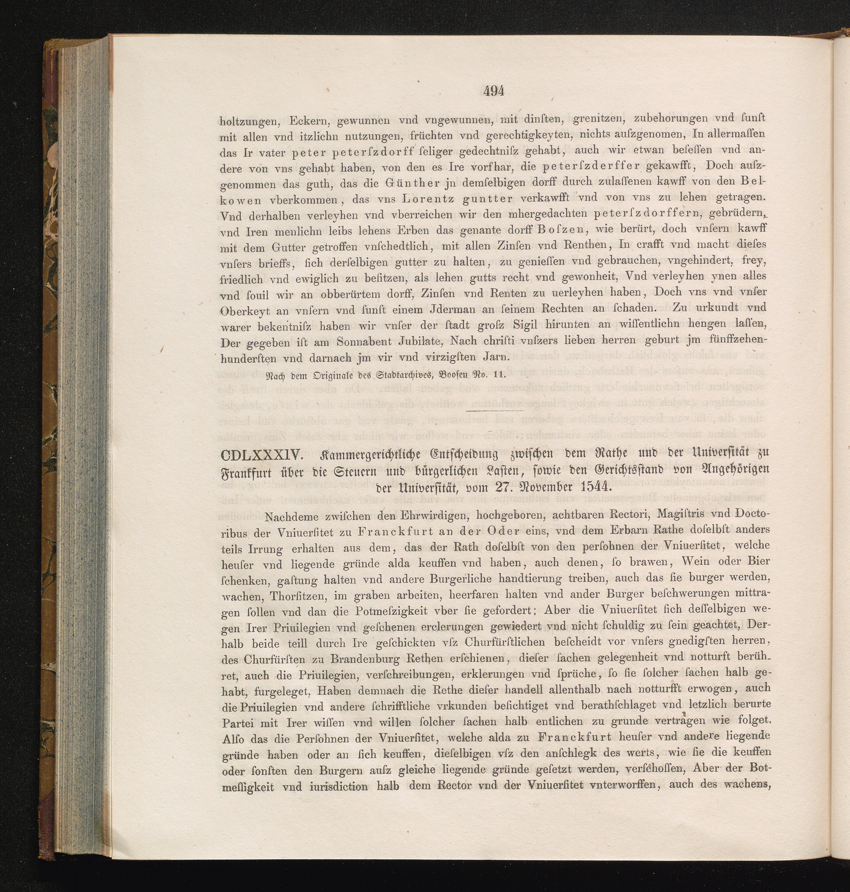 CDLXXXIV. Kammergerichtliche Entscheidung zwischen dem Rathe und der Universität[...]