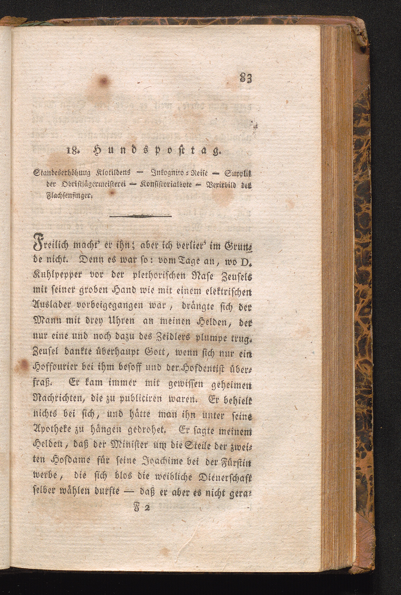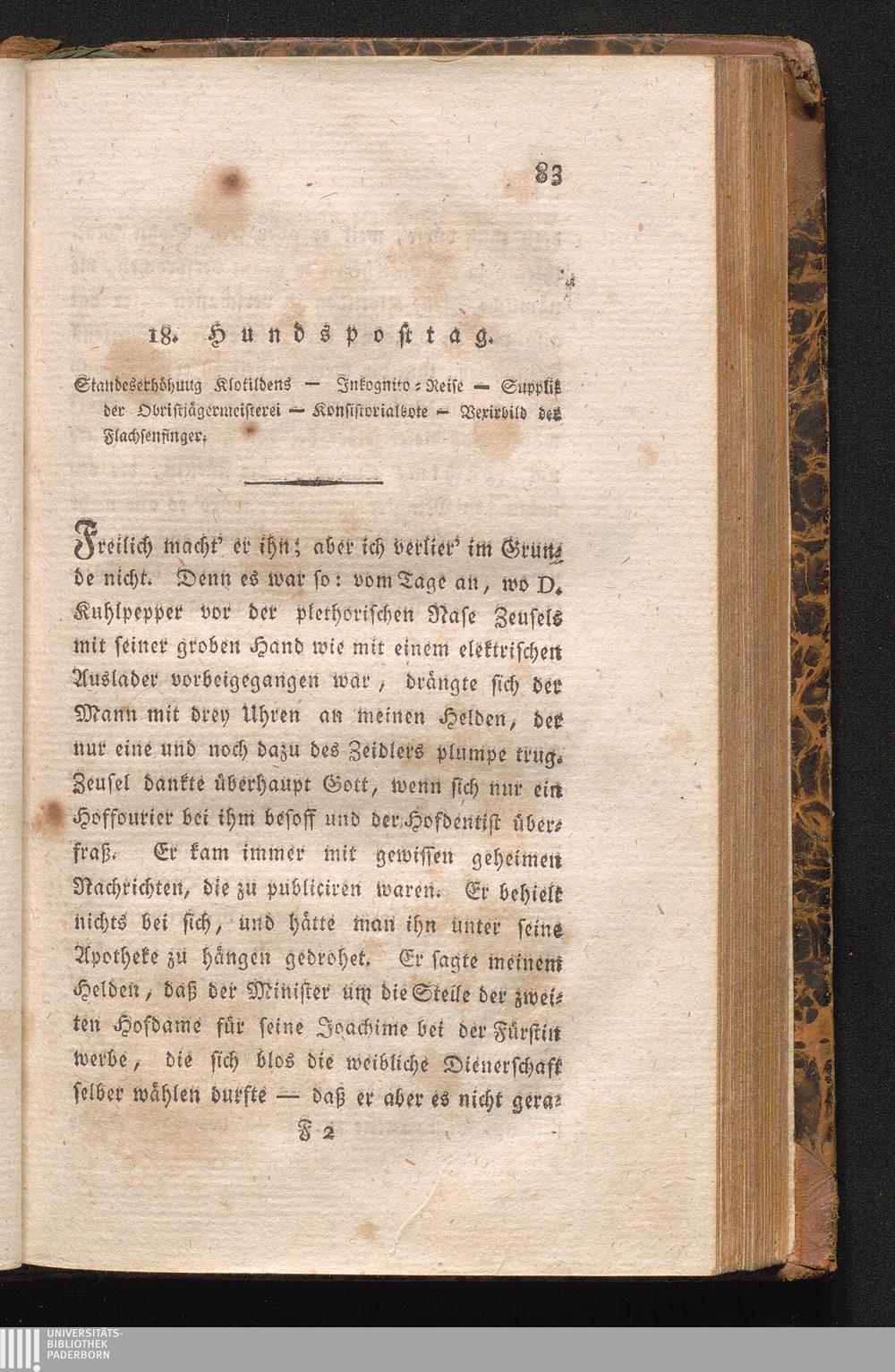 18. Hundsposttag. Standeserhöhung Klotildens - Jnkognito-Reise - Supplik der Obristjägermeisterei - Konsistorialbote - Vexirbild der Flachsensinger.