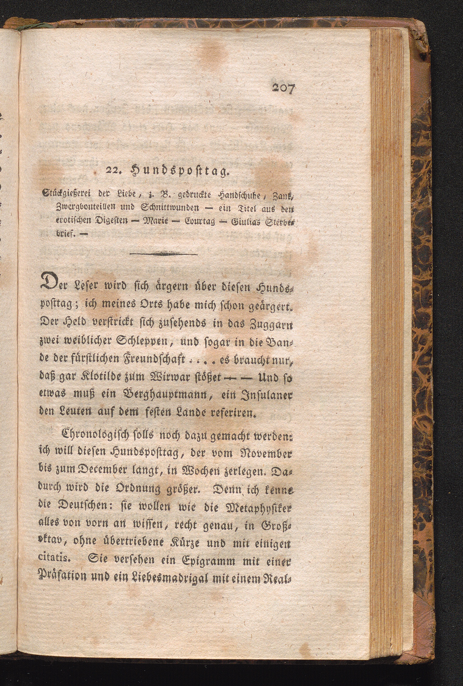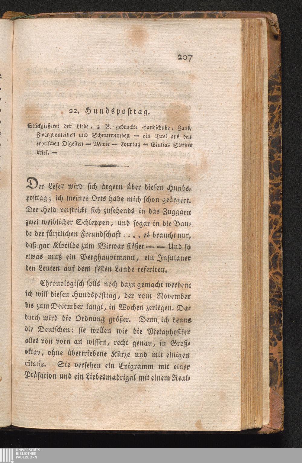 22. Hundsposttag. Stückgießerei der Liebe, i.B. gedruckte Handschuhe, Zank, Zwergbouteillen und Schnittwunden - ein Titel aus den erotischen Digesten - Marie - Courtag - Giulias Sterbebrief.