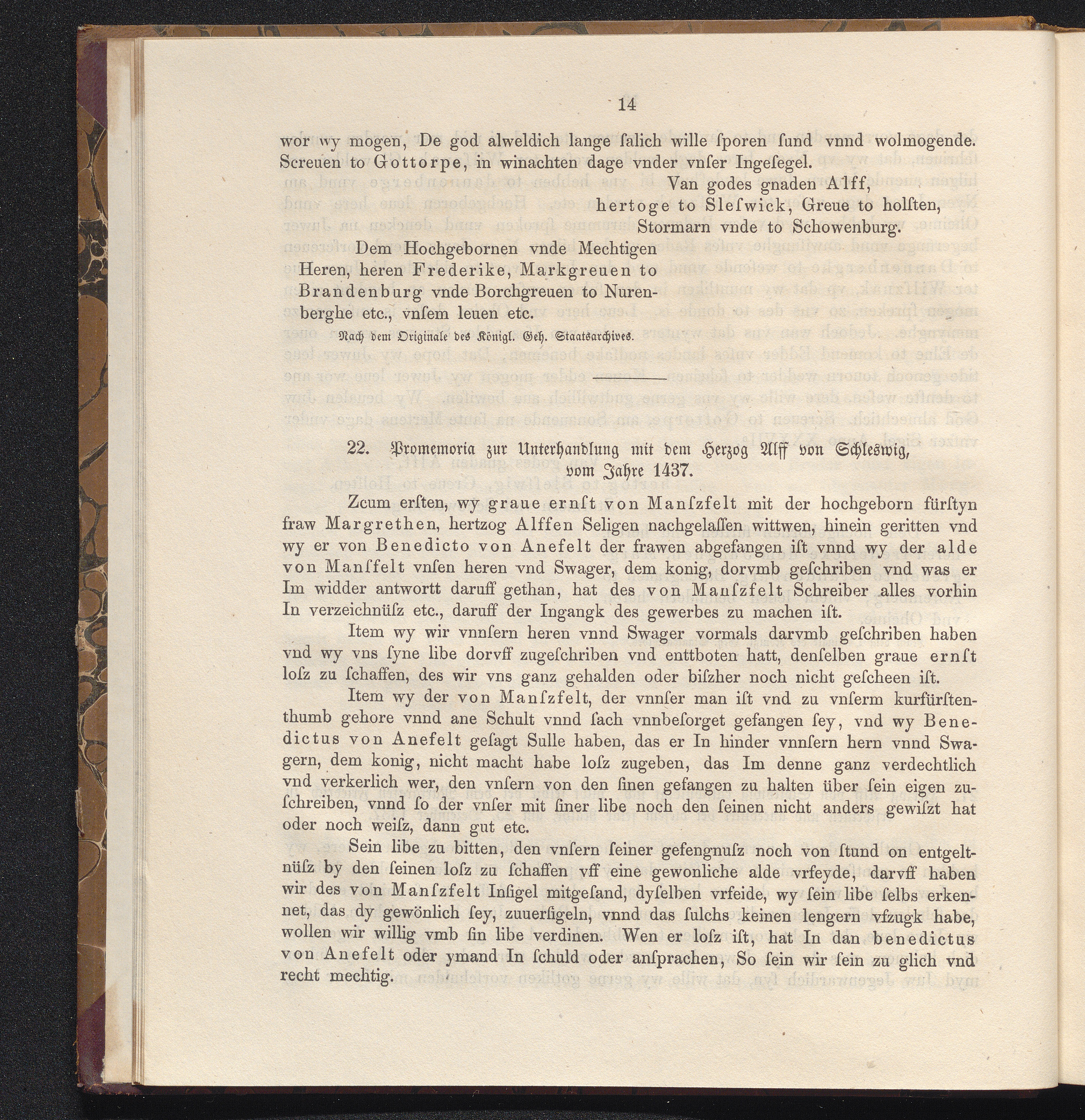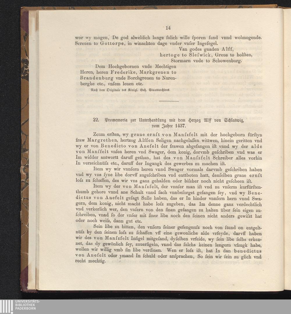 22. Promemoria zur Unterhandlung mit dem Herzog Alff von Schleswig, vom Jahre 14[...]