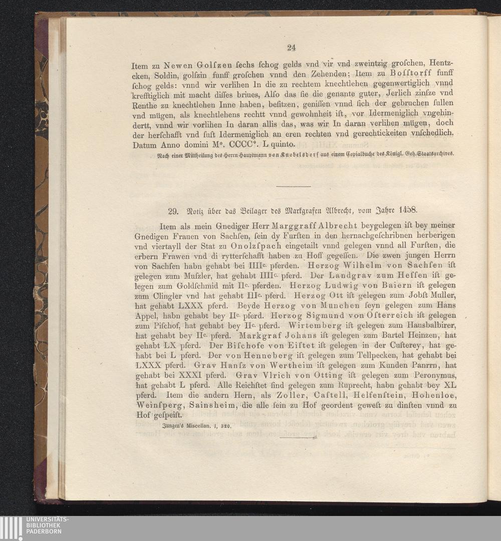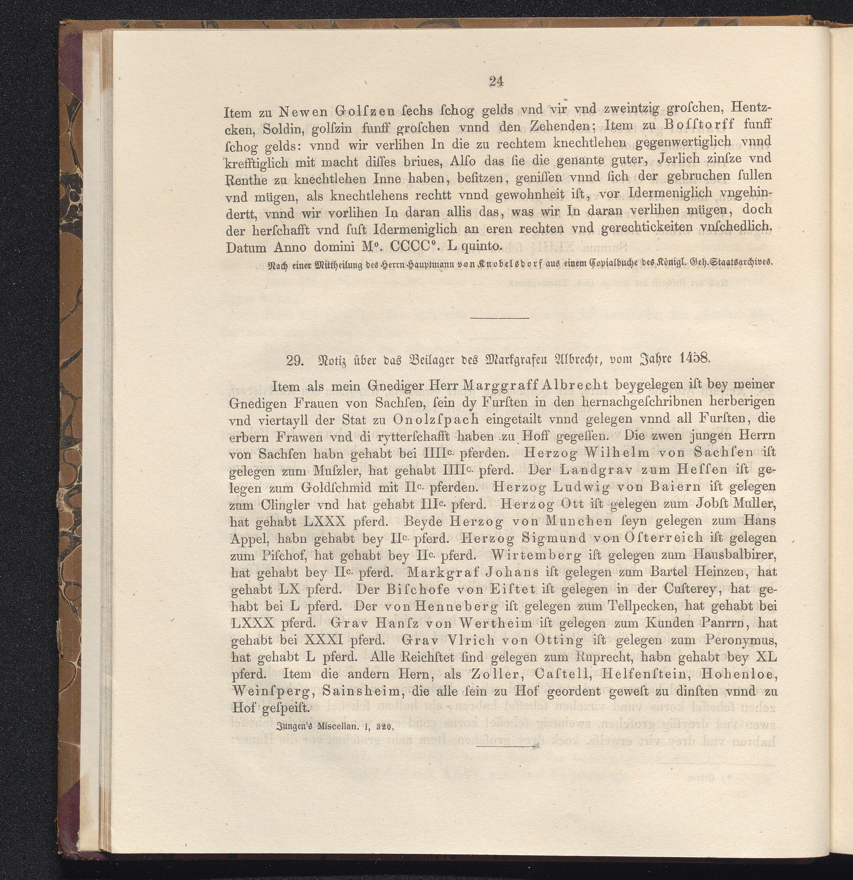 29. Notiz über das Beilager des Markgrafen Albrecht, vom Jahre 1458.