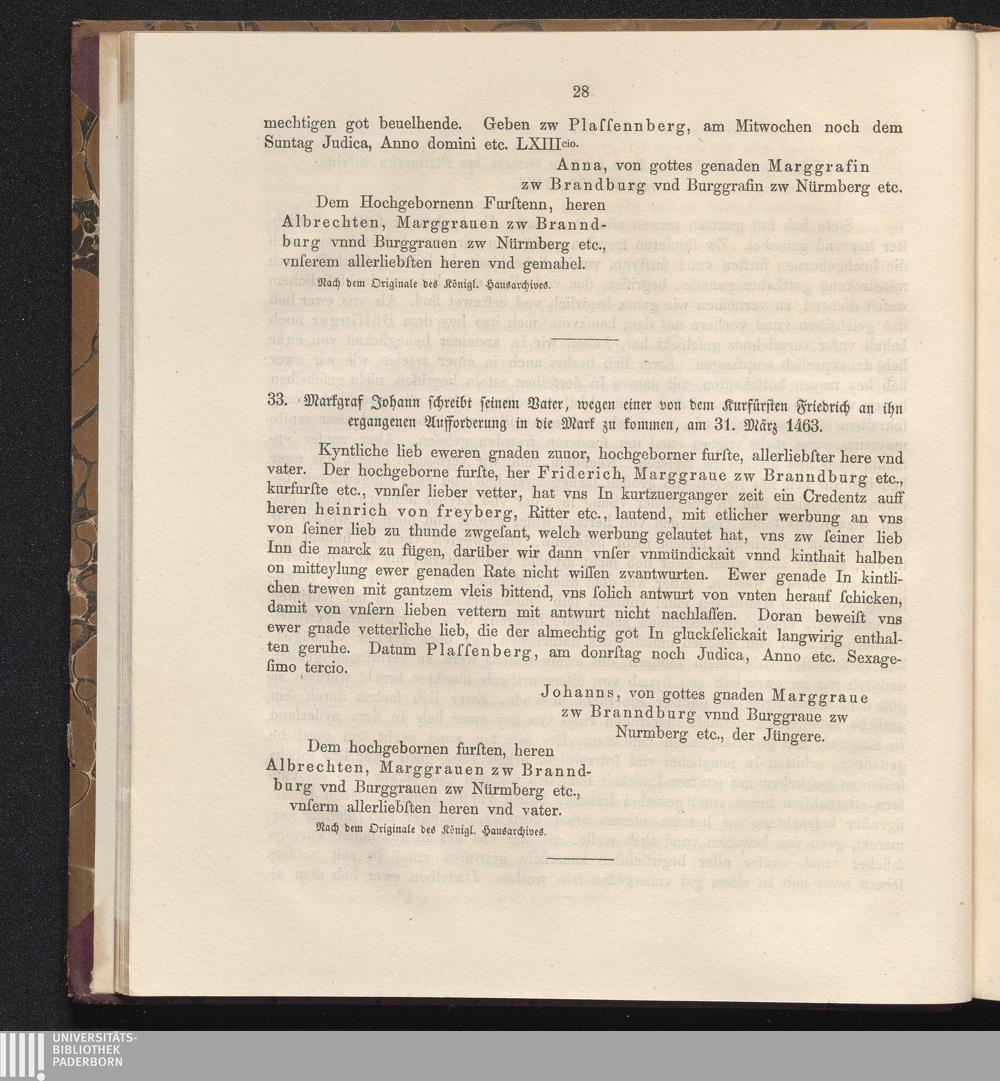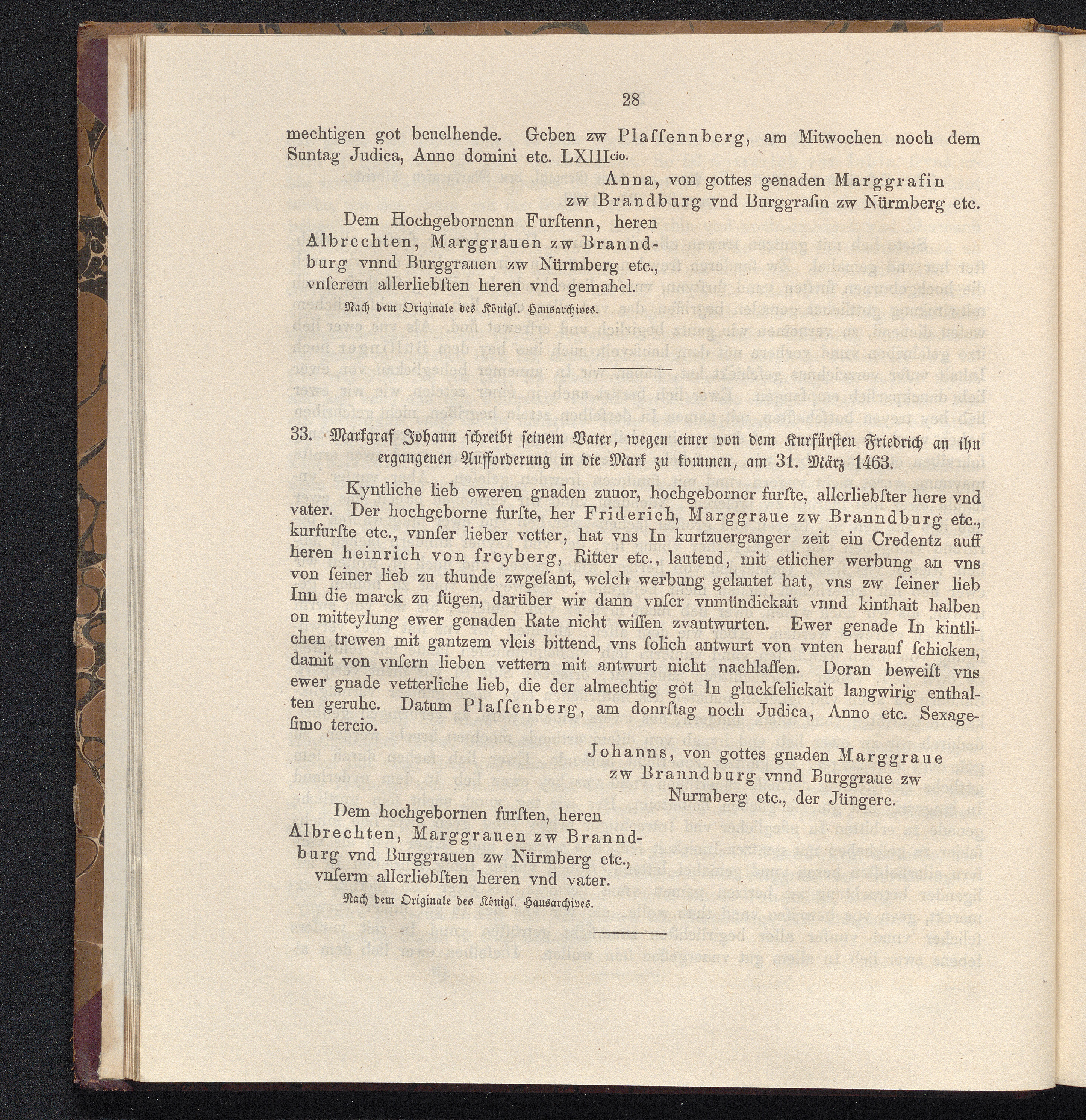 33. Markgraf Johann schreibt seinem Vater, wegen einer von dem Kurfürsten Friedrich[...]