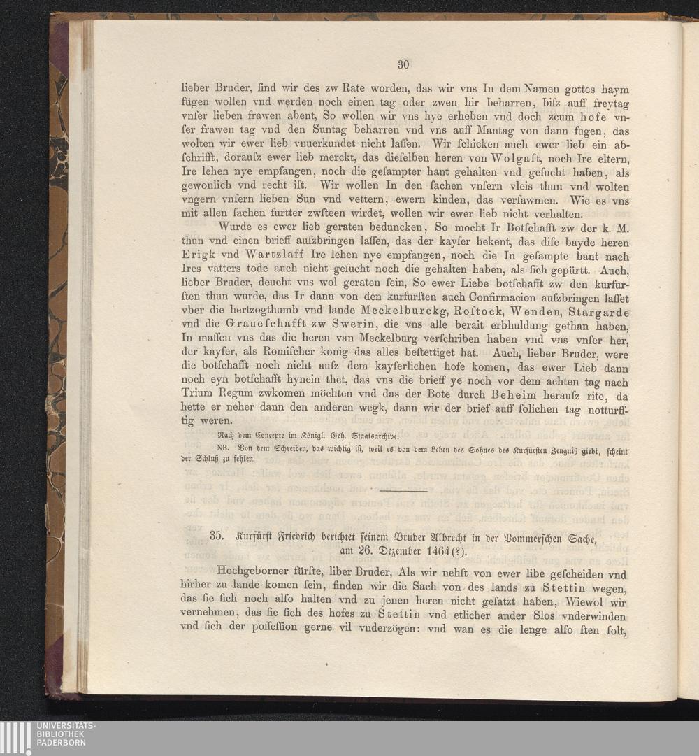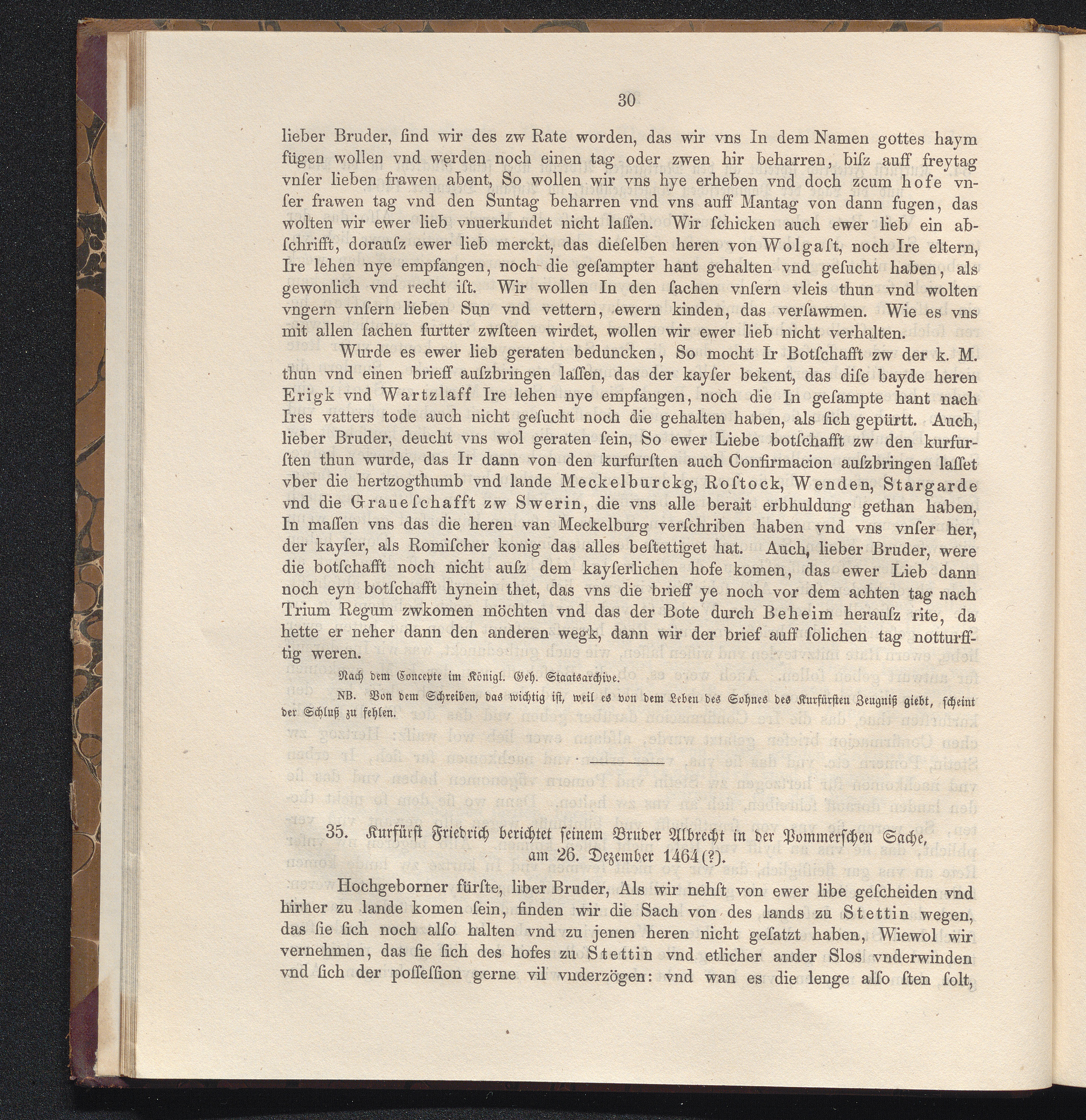 35. Kurfürst Friedrich berichtet seinem Bruder Albrecht in der Pommerschen Sache,[...]