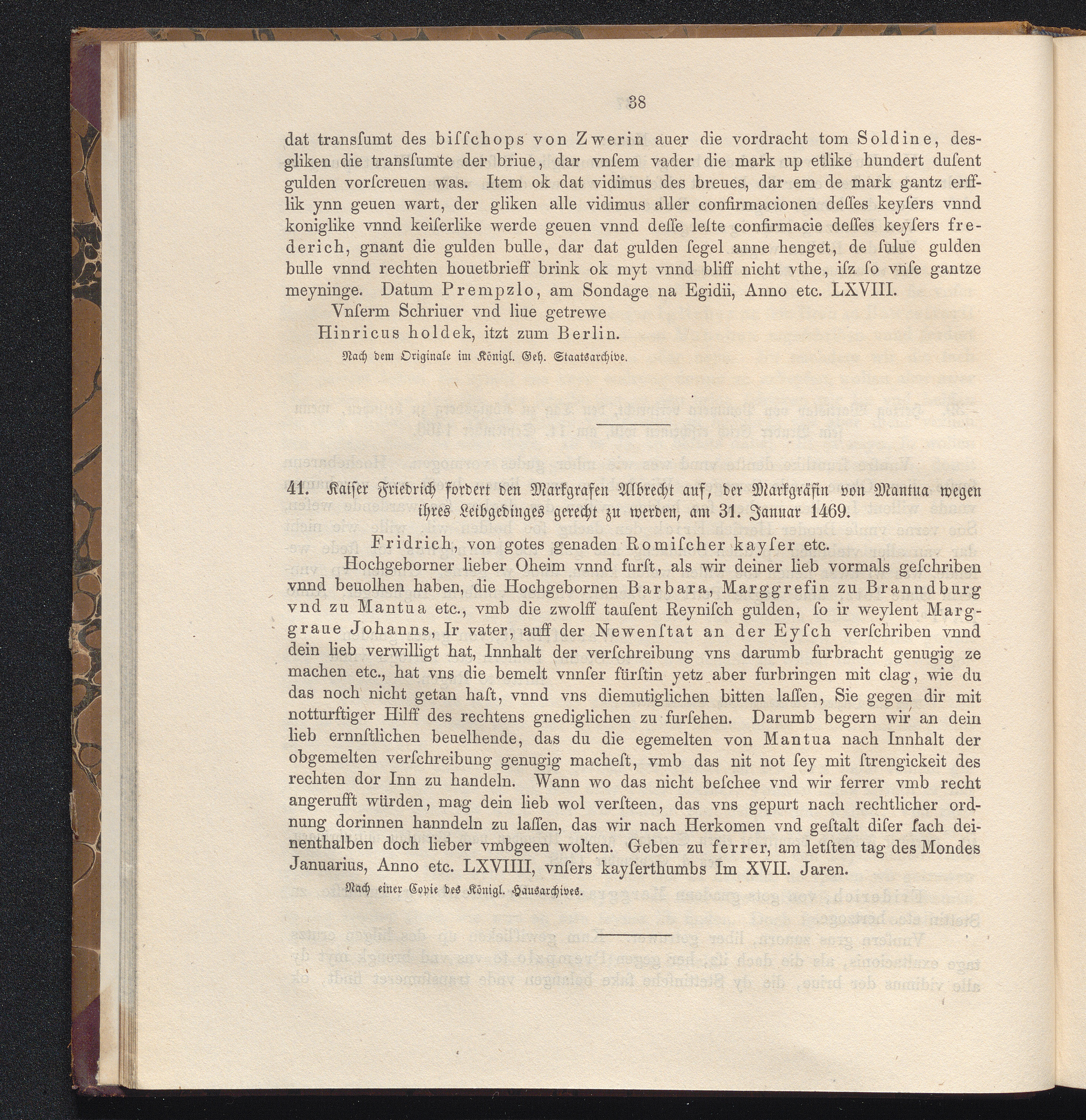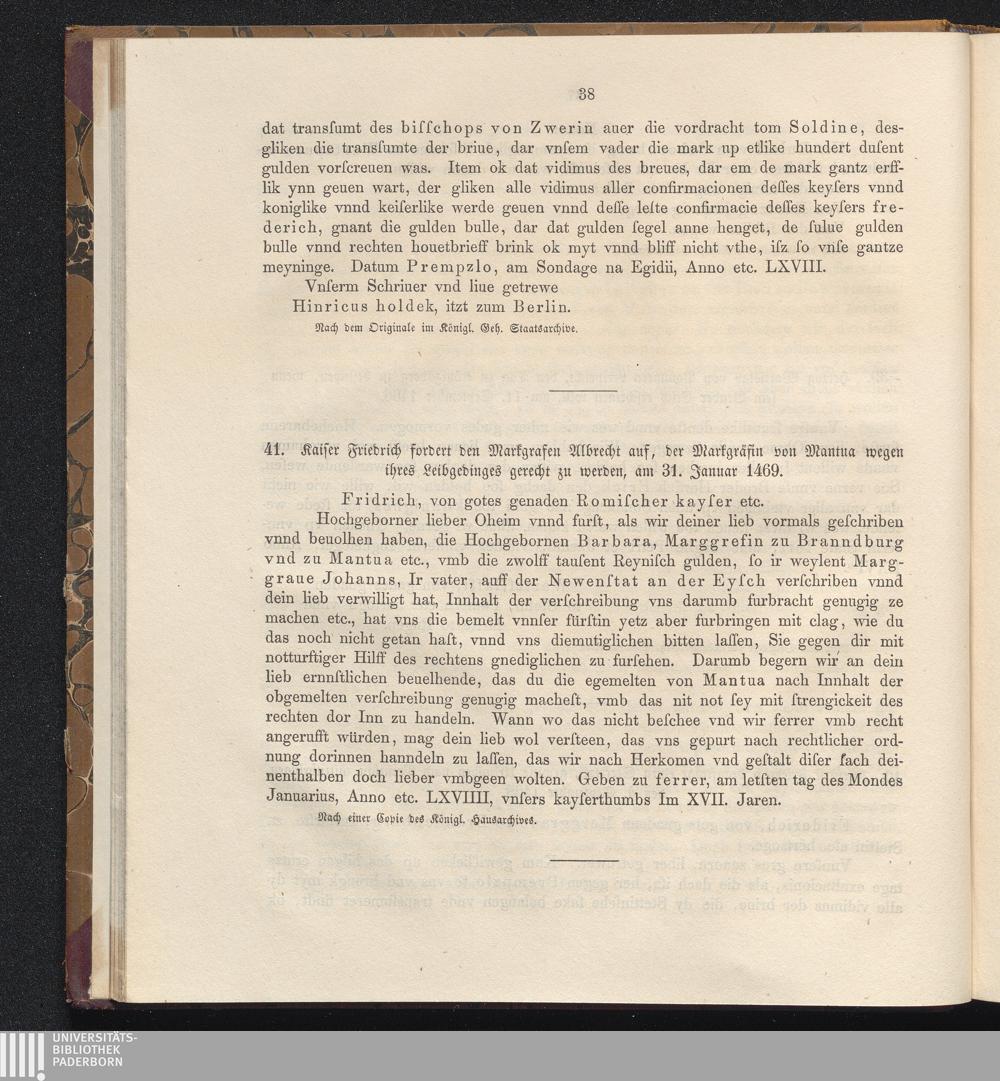 41. Kaiser Friedrich fordert den Markgrafen Albrecht auf, der Markgräfin von Mantua[...]