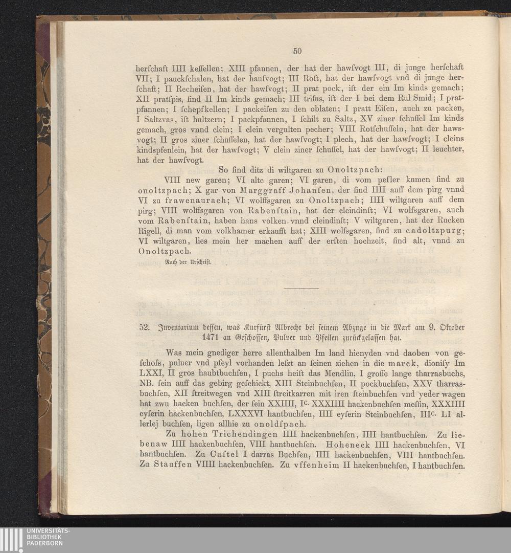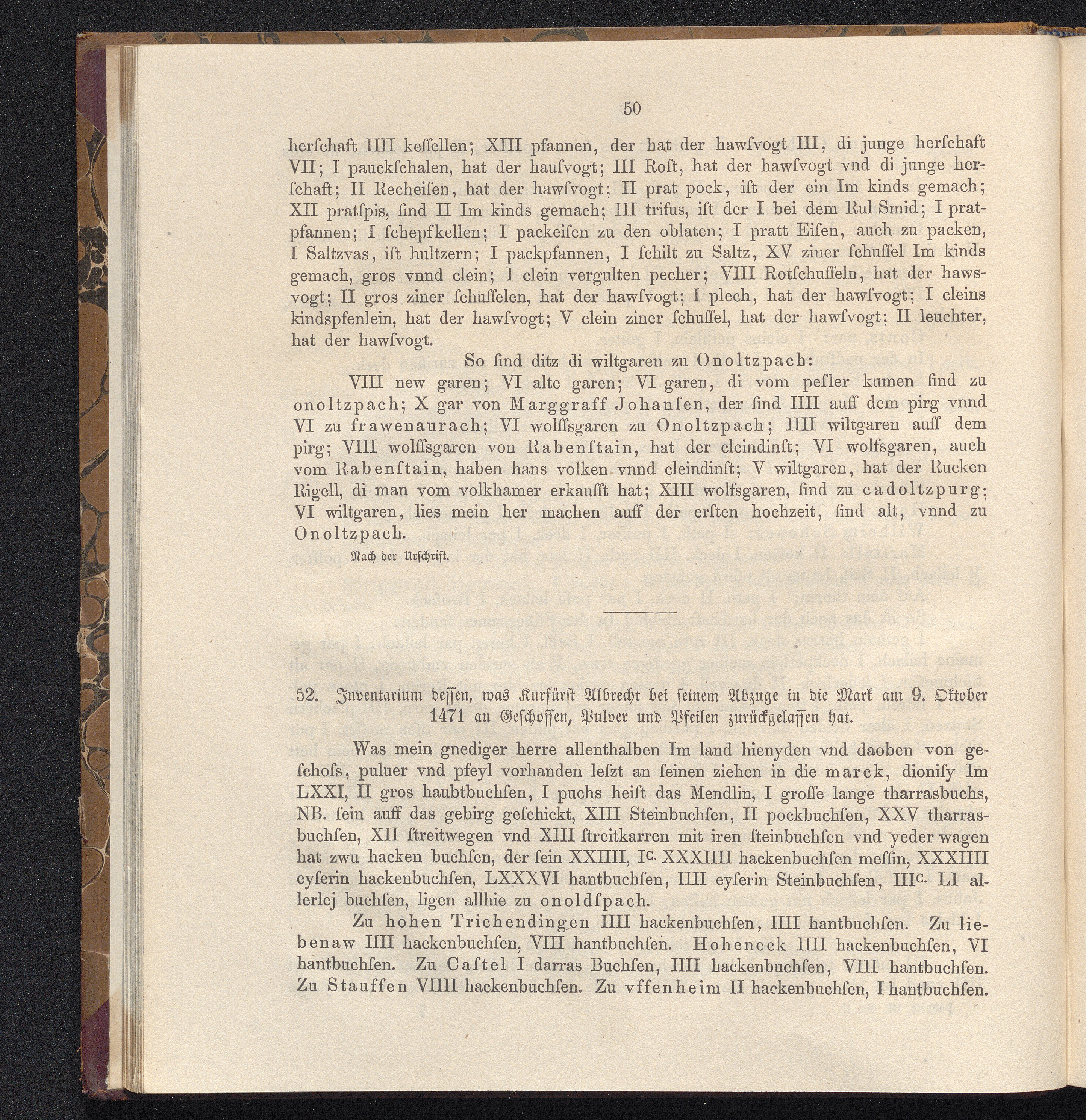 52. Inventar dessen, was Kurfürst Albrecht bei seinem Abzuge in die Mark am 9. Oktober[...]