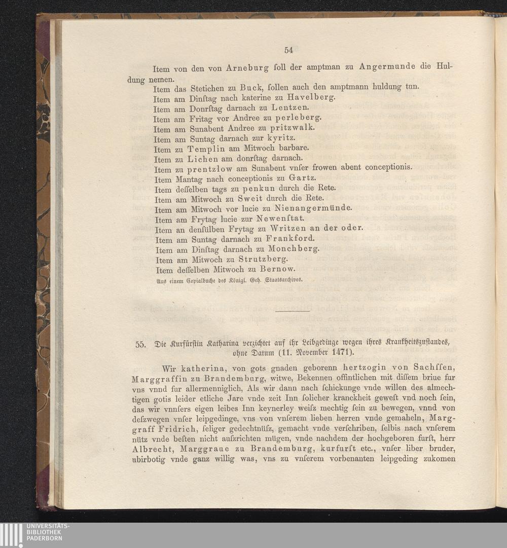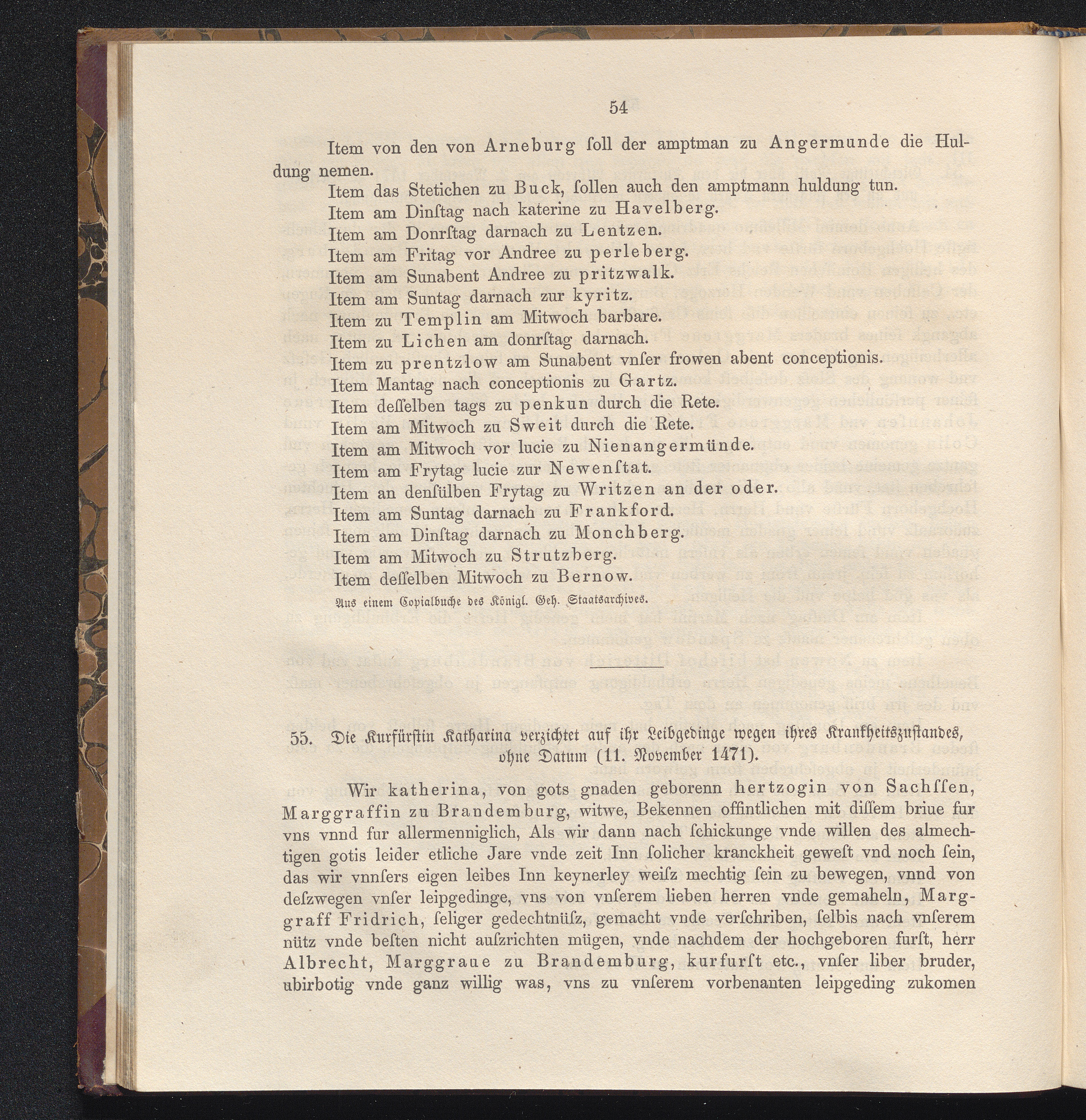 55. Die Kurfürstin Katharina verzichtet auf ihr Leibgedinge wegen ihres Krankheitszustandes,[...]