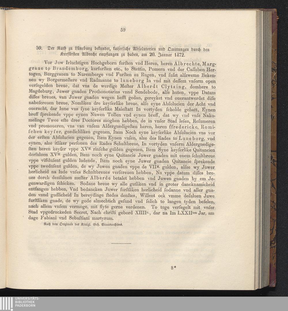 59. Der Rath zu Lüneburg bekundet, kaiserliche Absolutorien und Quittungen durch[...]