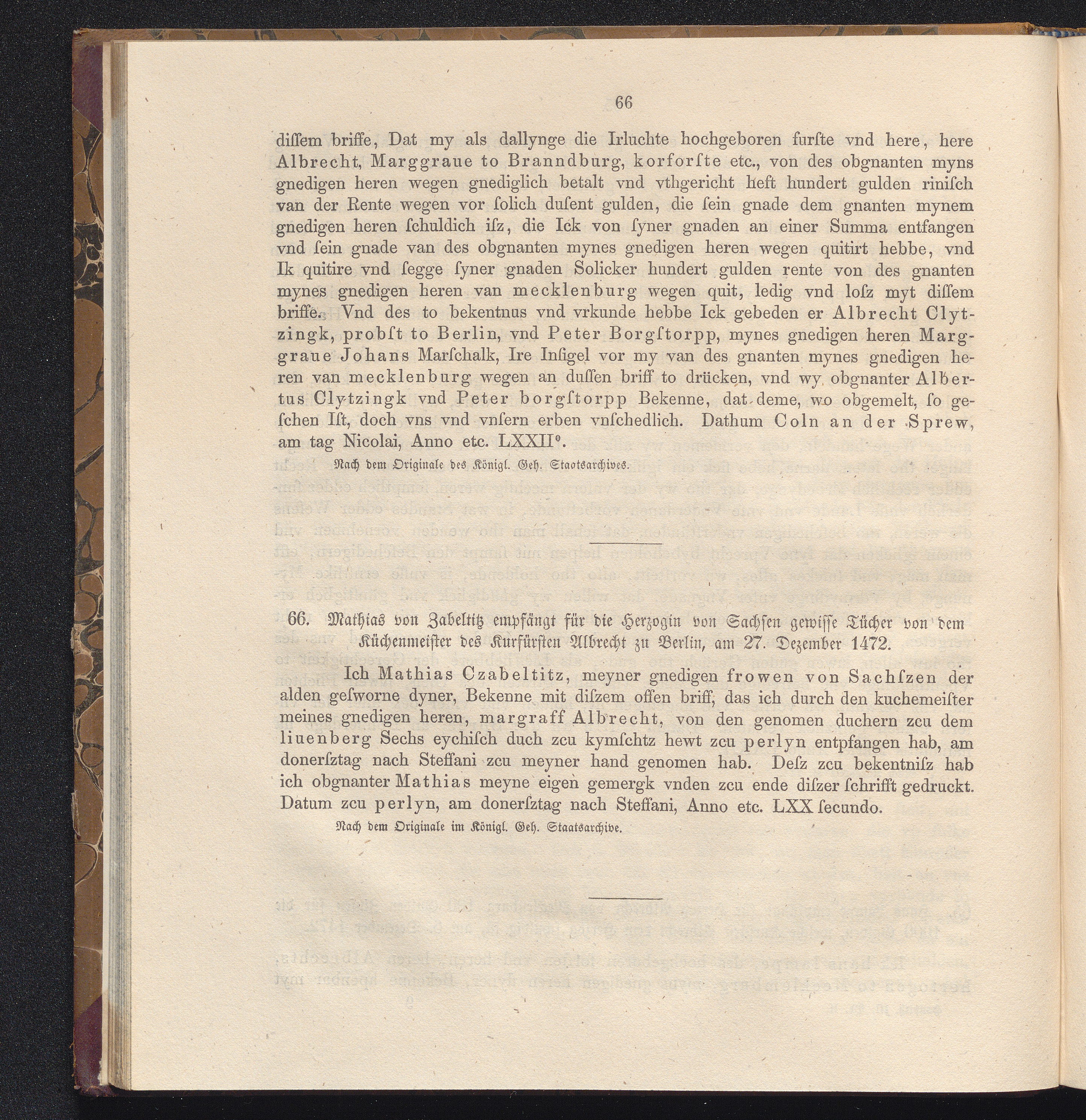 66. Mathias von Zabeltitz empfängt für die Herzogin von Sachsen gewisse Tücher von[...]