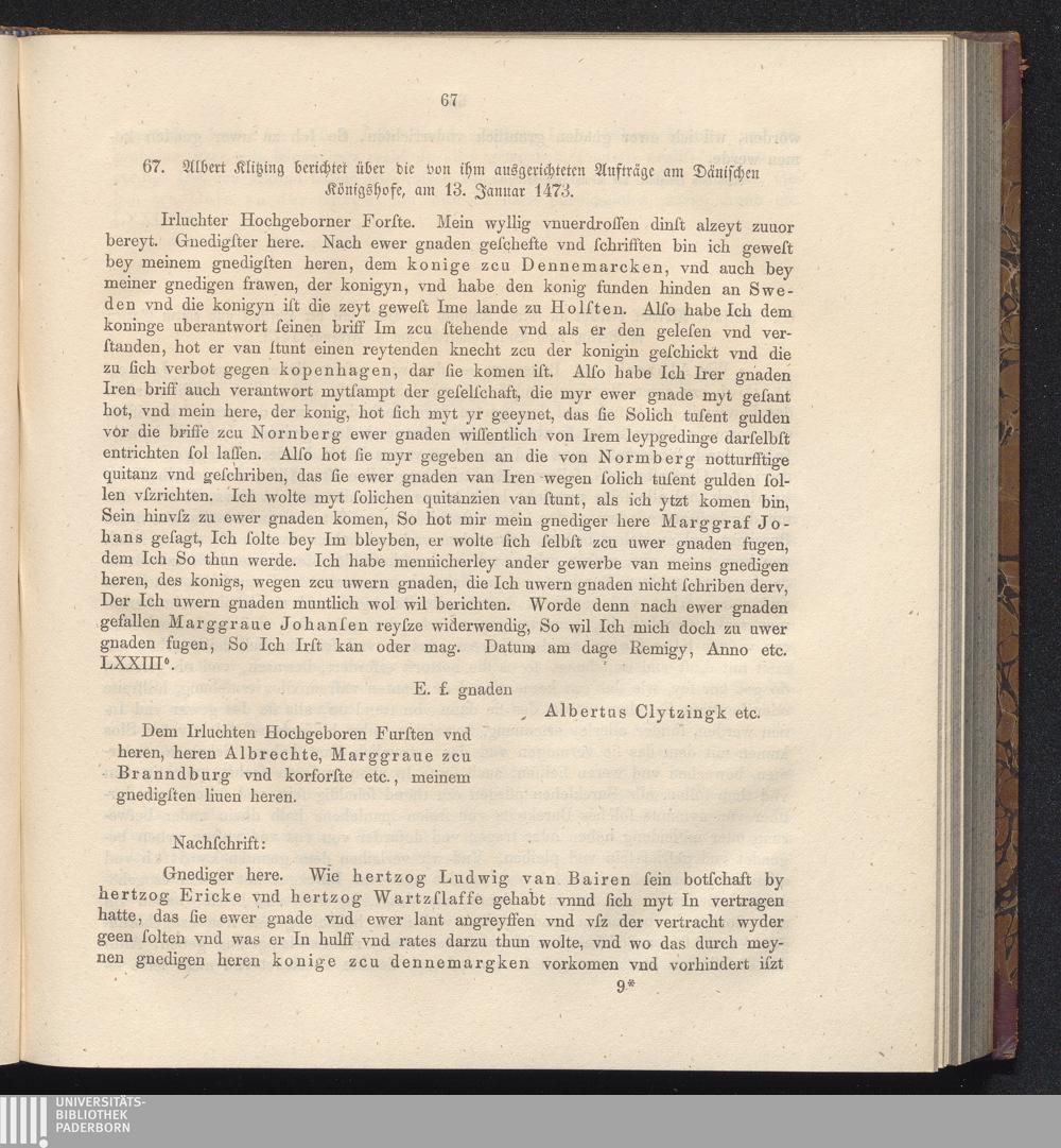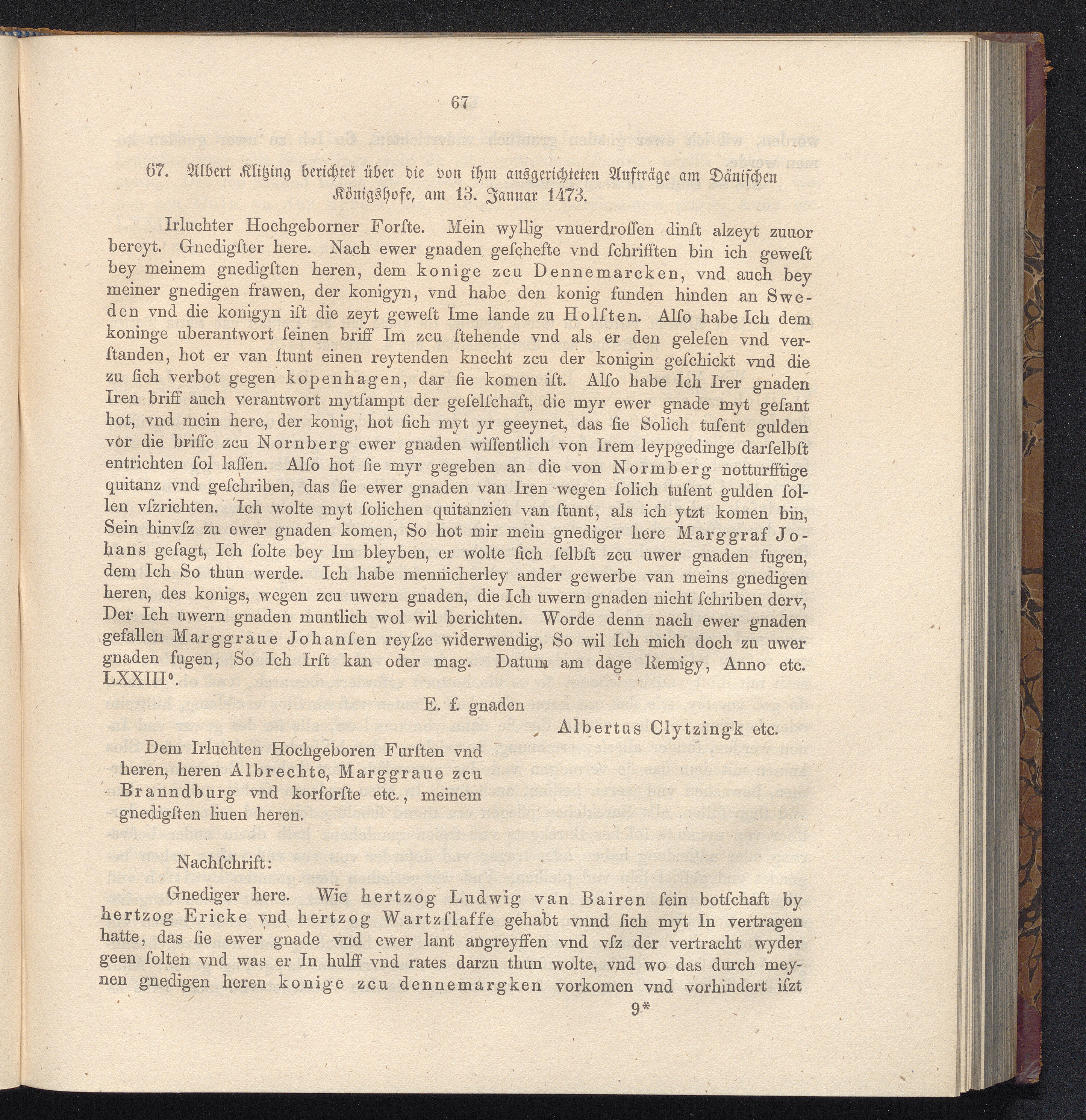 67. Alber Kitzing berichtet über die von ihm ausgerichteten Aufträge am Dänischen[...]