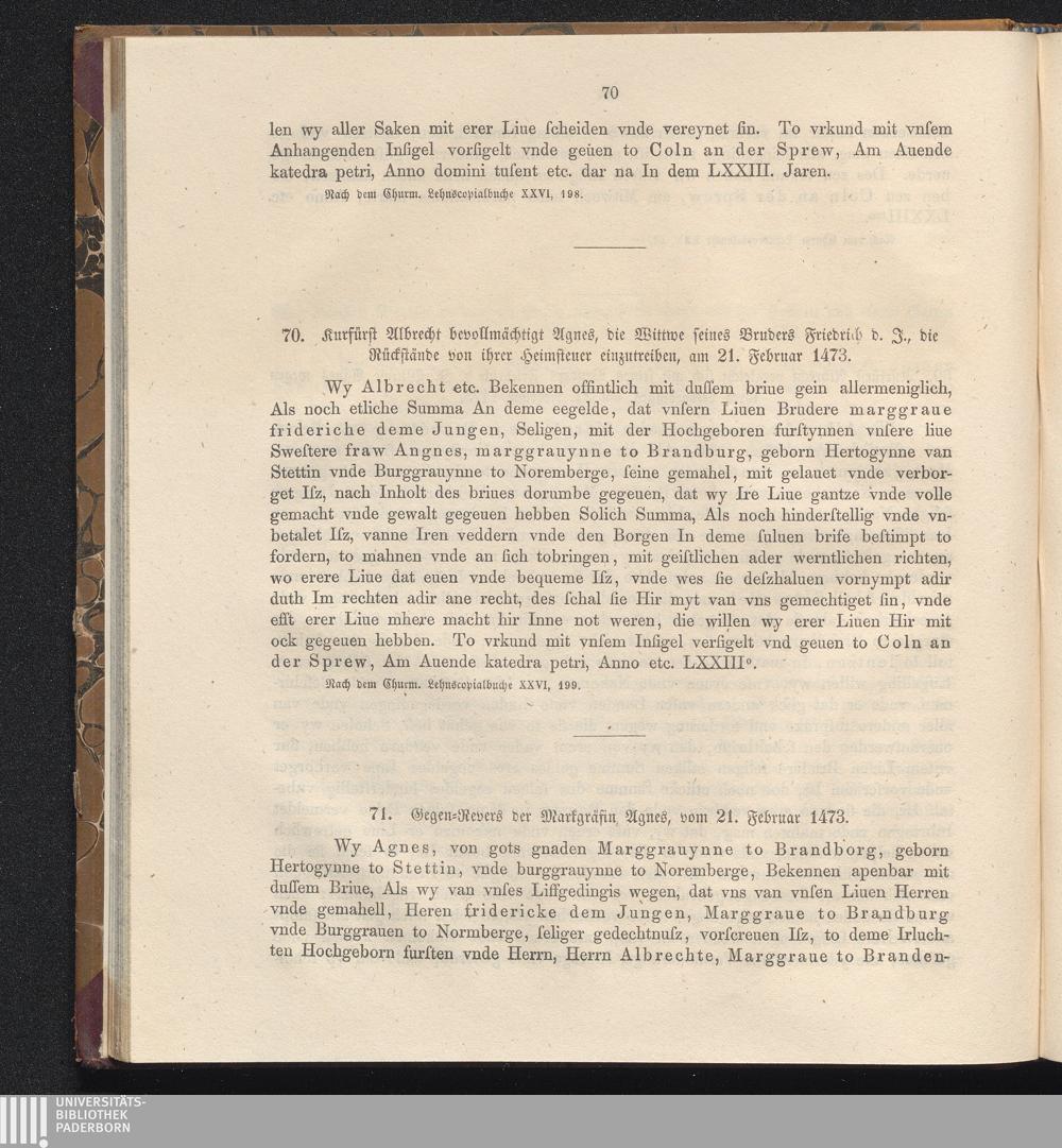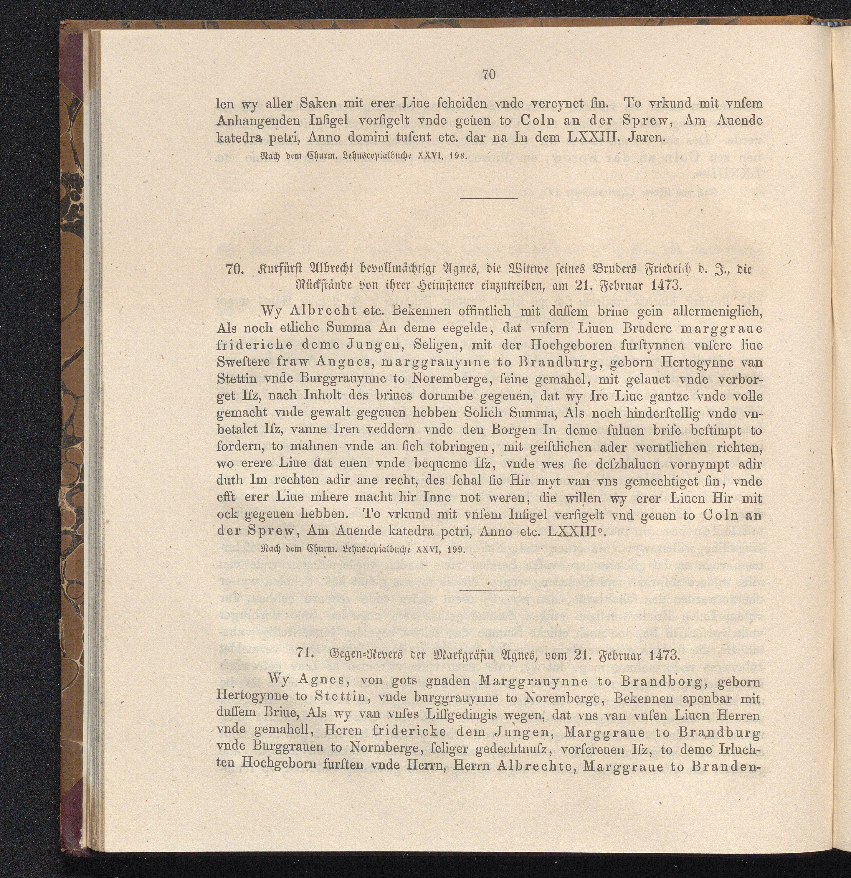 70. Kurfürst Albrecht bevollmächtigt Agnes, die Wittwe seines Bruders Friedrch d.[...]