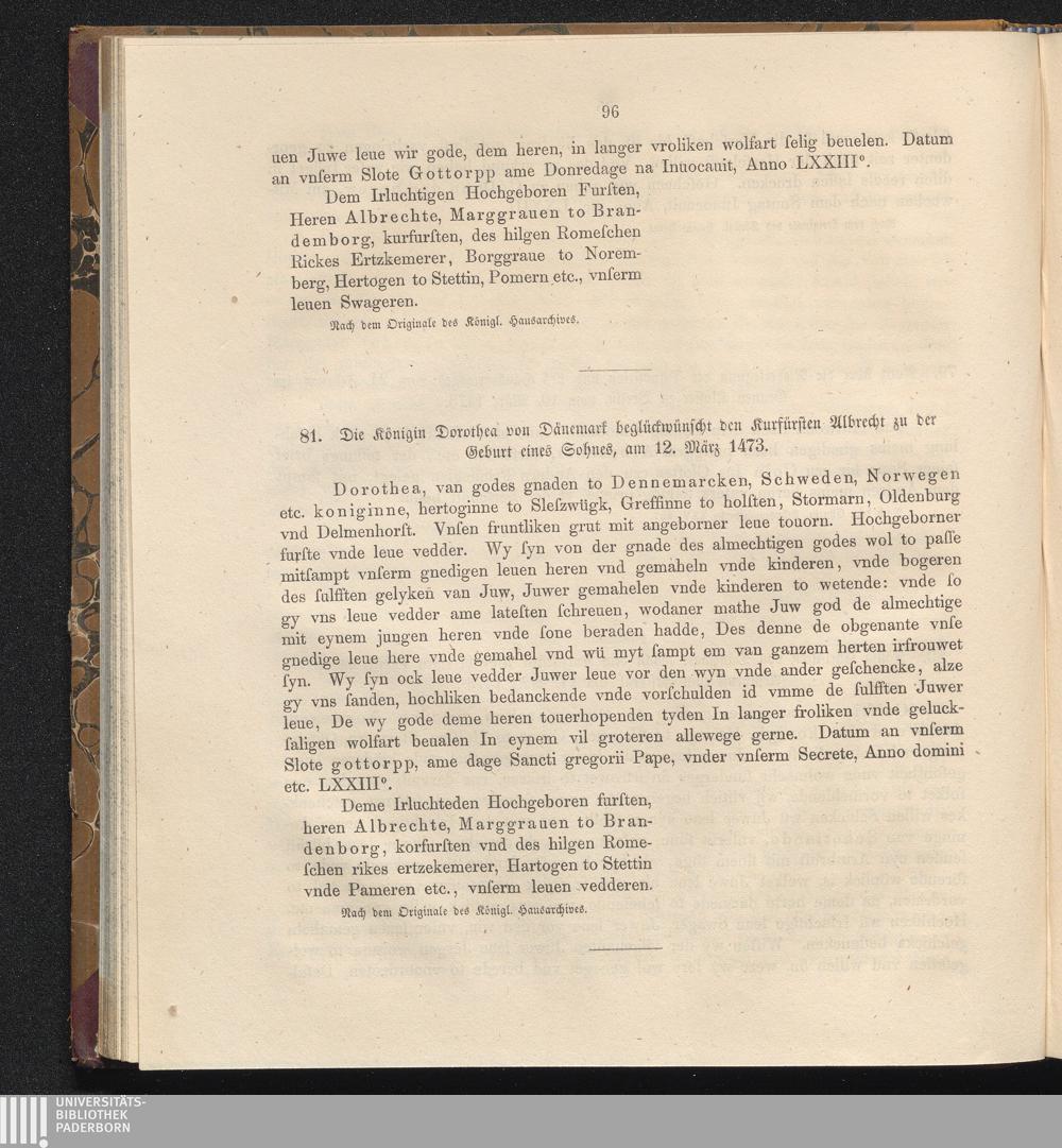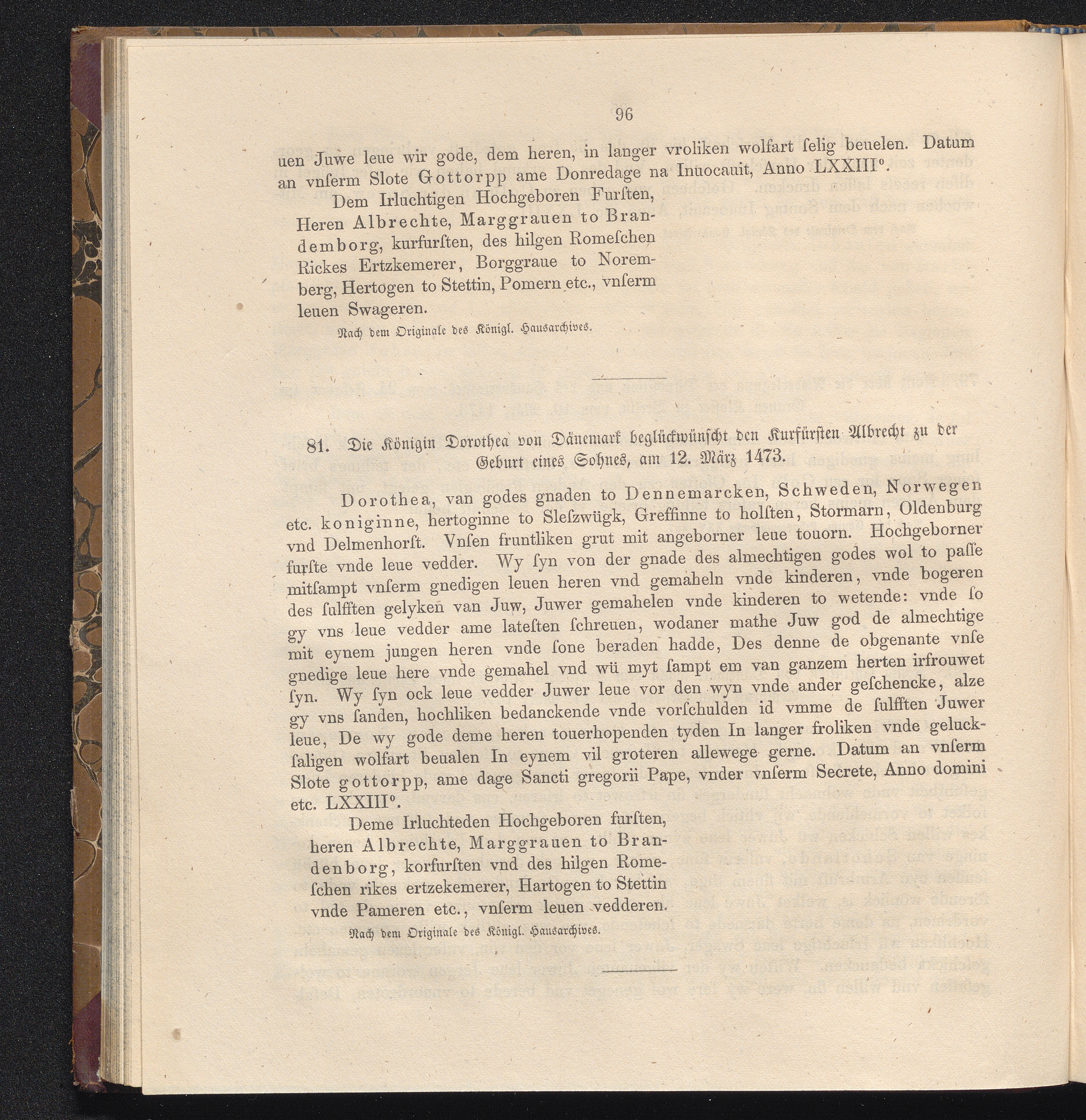 81. Die Königin Dorothea von Dänemark beglückwünscht den Kurfürsten Albrecht zu der[...]