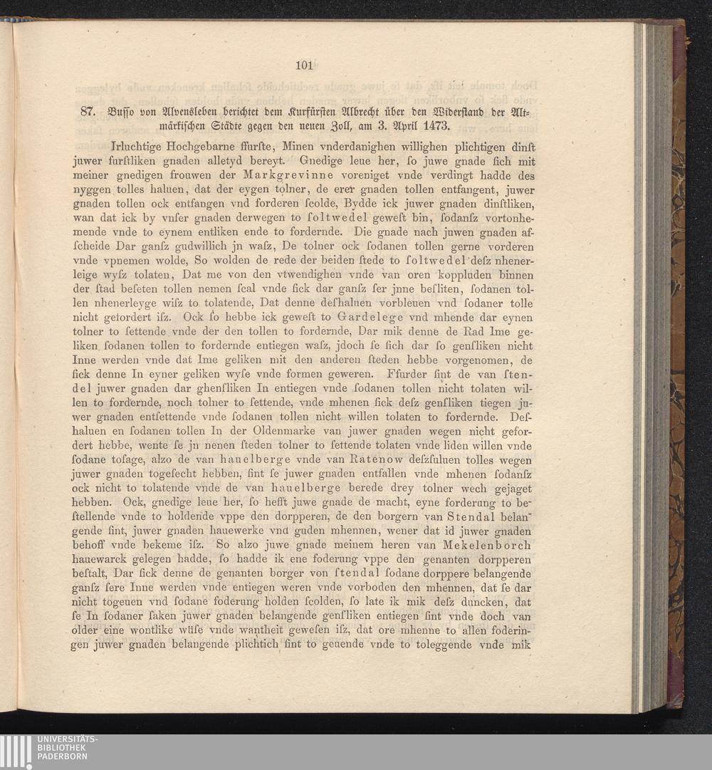 87. Busso von Alvensleben berichet dem Kurfürsten Albrecht über den Widerstand der[...]