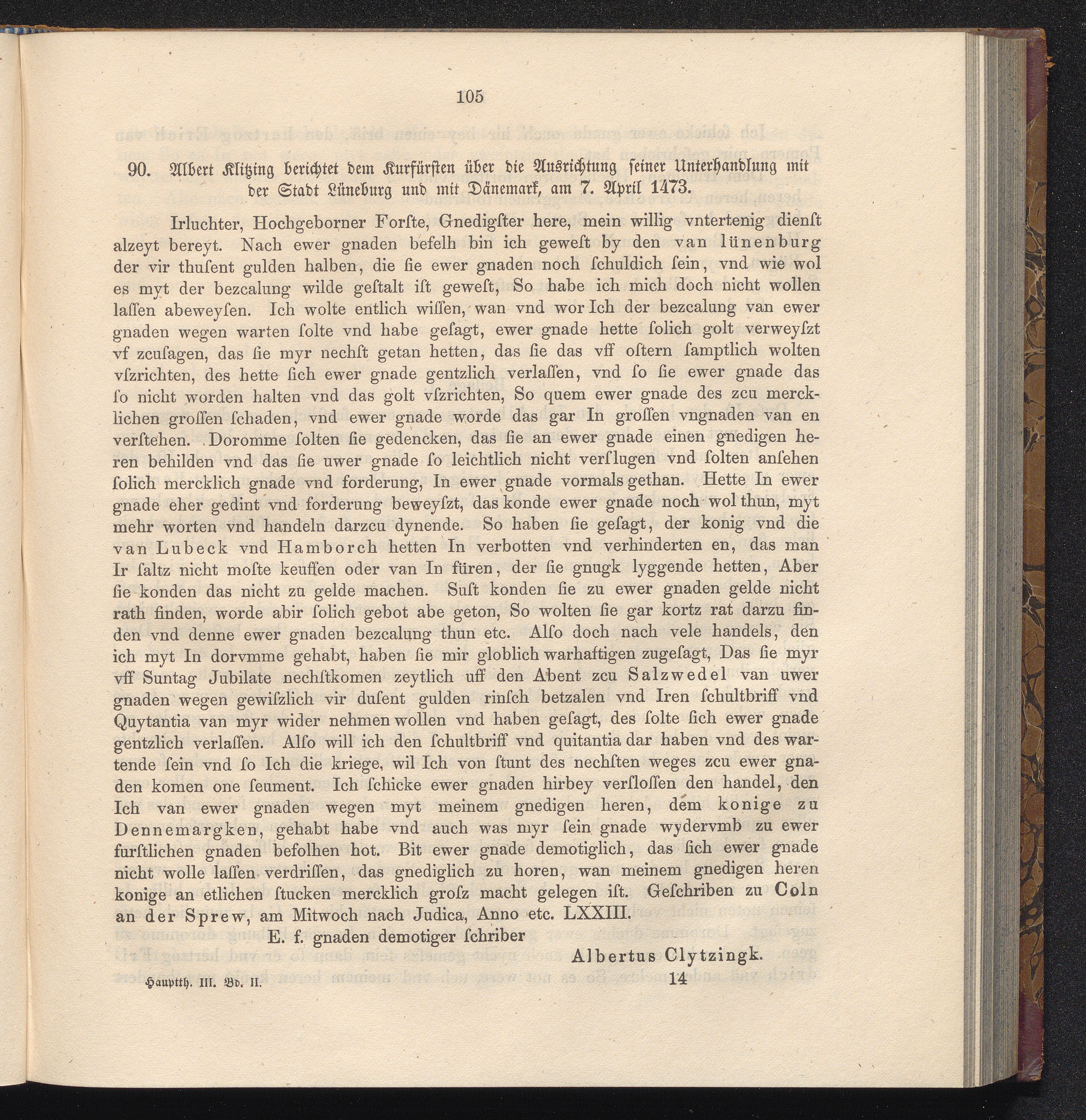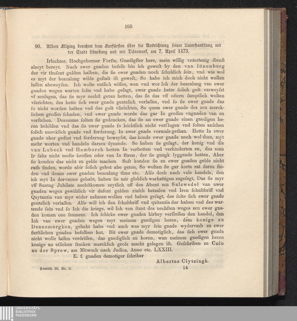 90. Albert Klitzing berichtet dem Kurfürsten über die Ausrichtung seiner Unterhandlung[...]