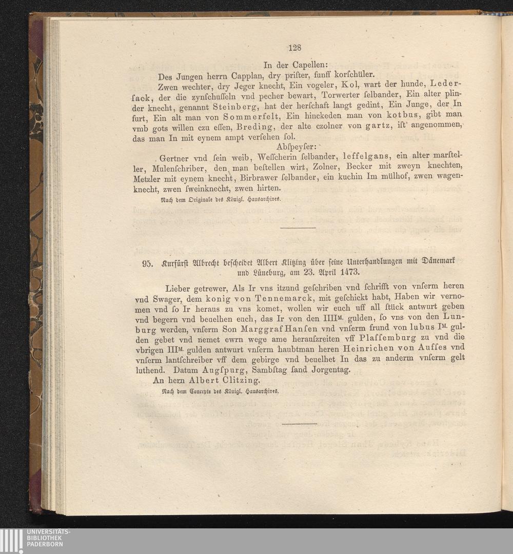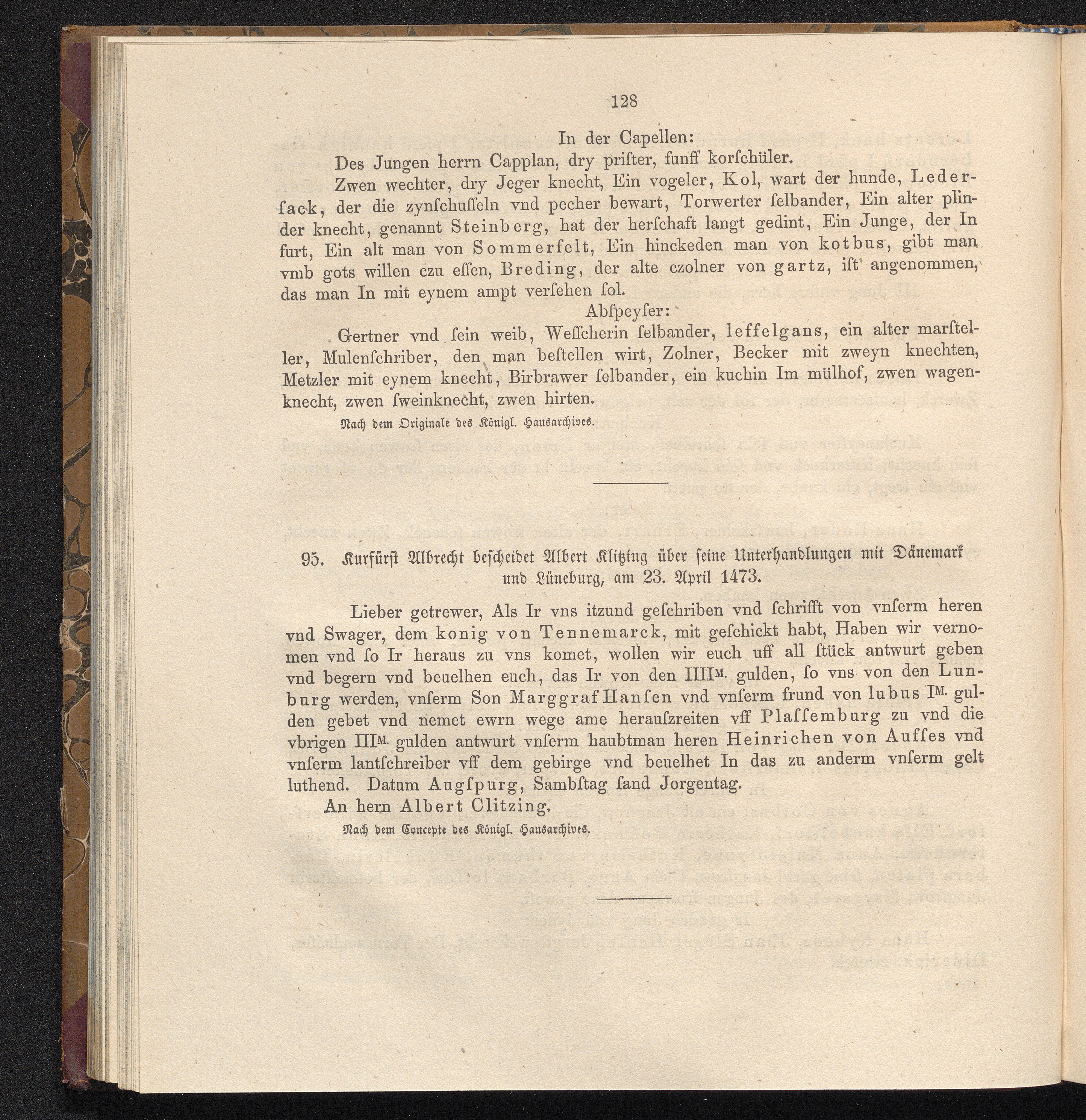 95. Kurfürst Albrecht bescheidet Albert Klitzing über seine Unterhandlungen mit Dänemark[...]