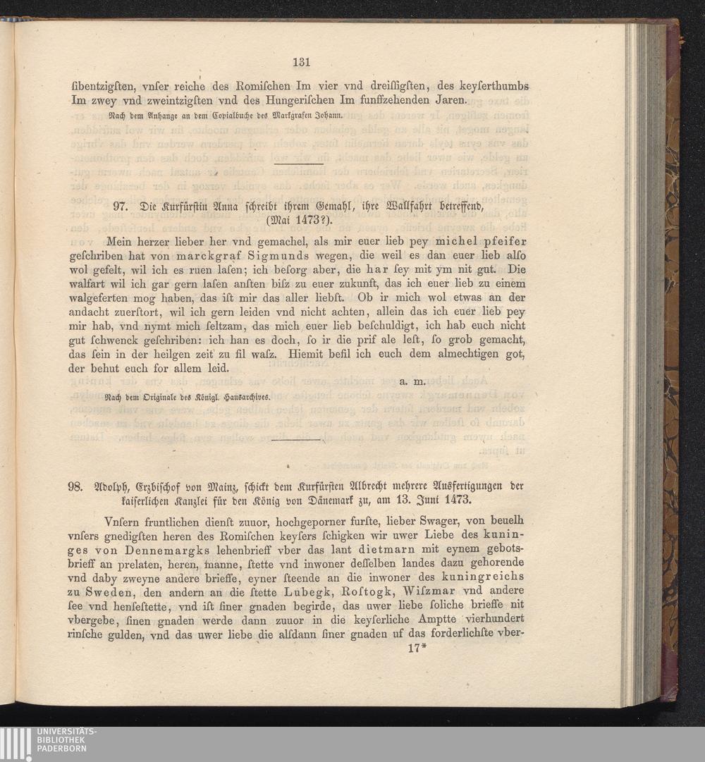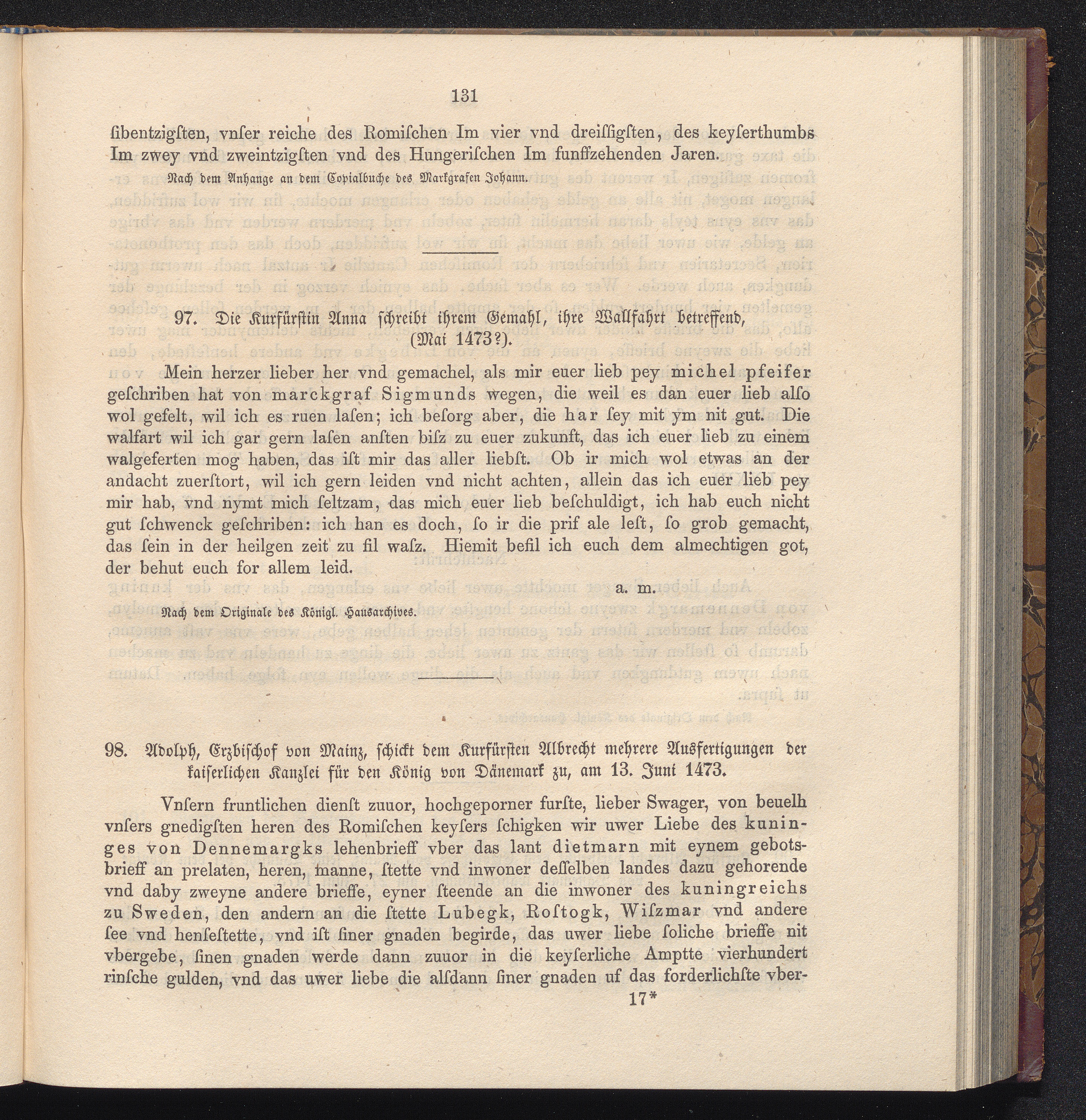 97. Die Kurfürstin Anna schreibt ihrem Gemahl, ihre Wallfahrt betreffend, (Mai 1[...]