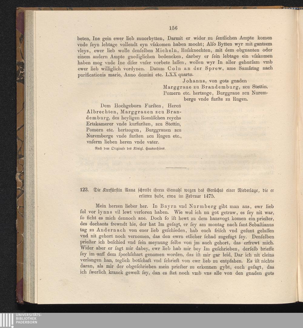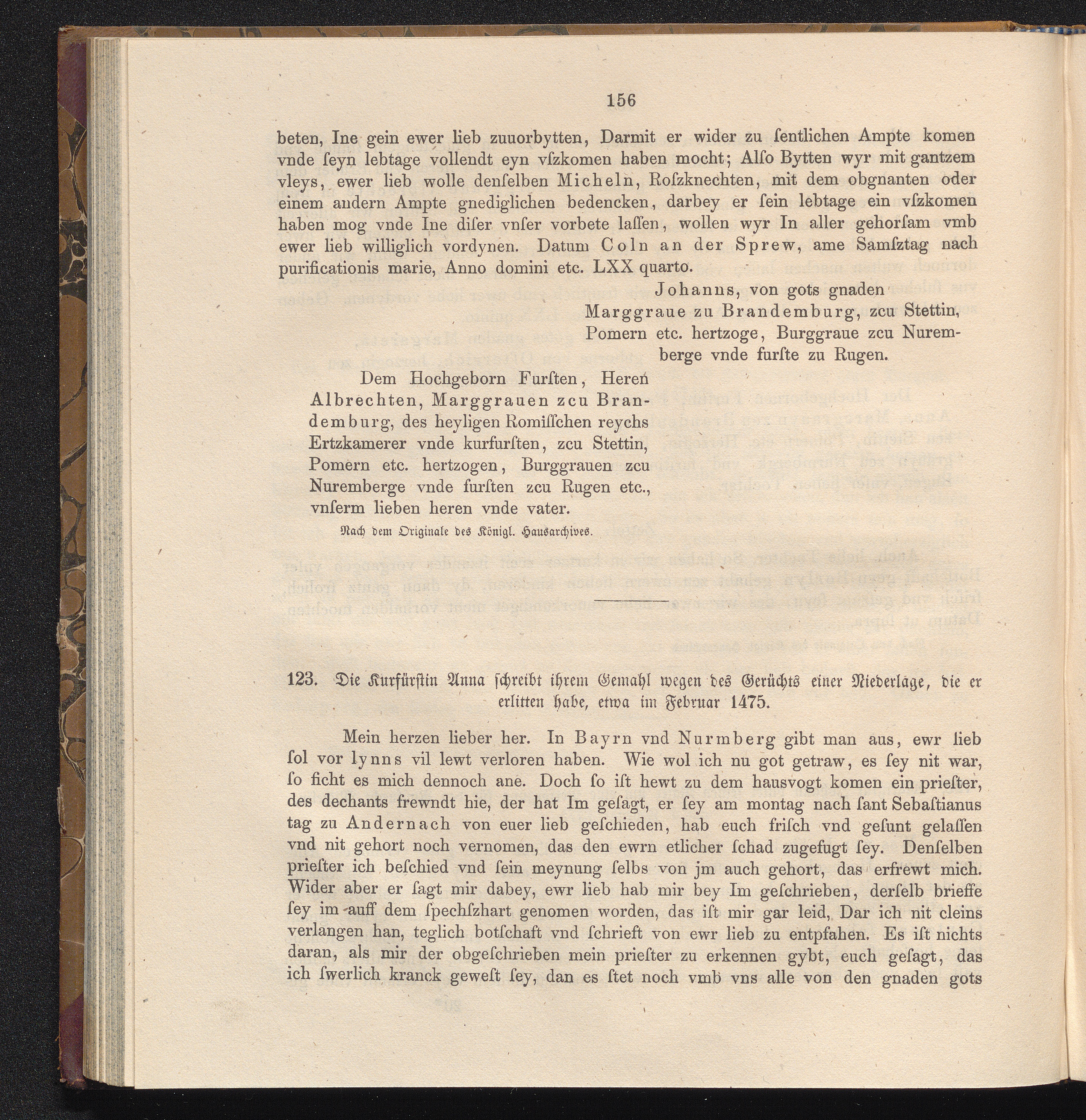 123. Die Kurfürstin Anna schreibt ihrem Gemahl wegen des Gerüchts einer Niederlage,[...]