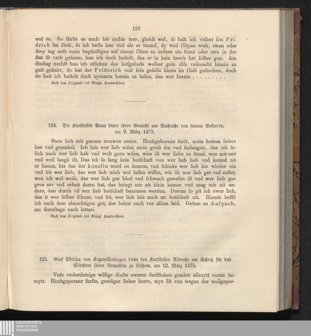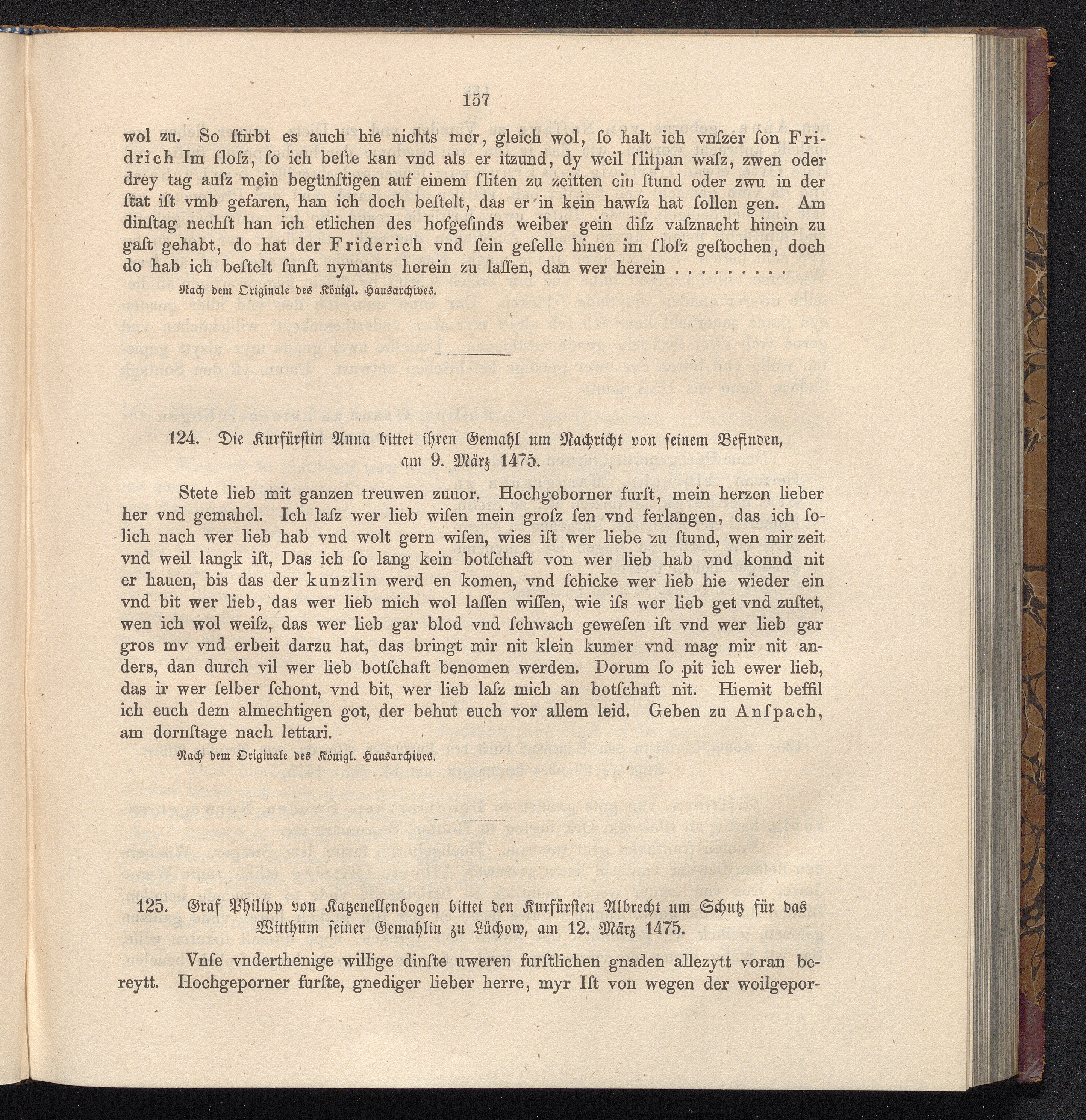 124. Die Kurfürstin Anna bittet ihren Gemahl um Nachricht von seinem Befinden, am[...]
