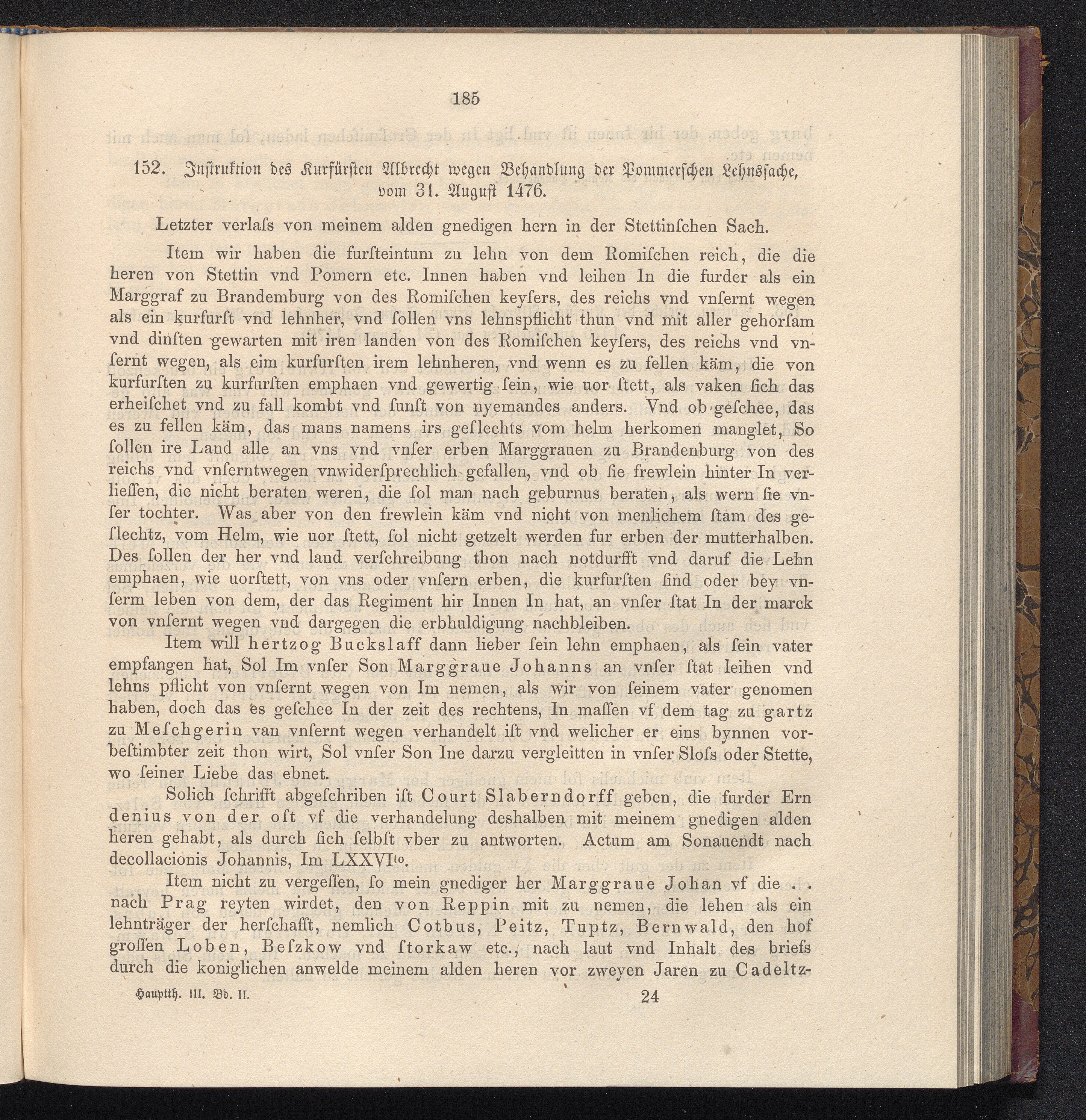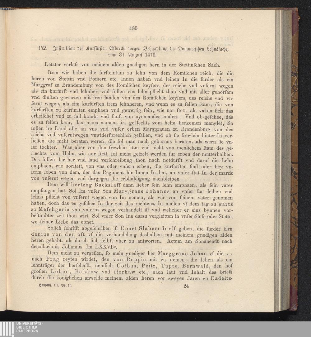 152. Instruktionen des Kurfürsten Albrecht wegen Behandlung der Pommerschen Lehnssache,[...]
