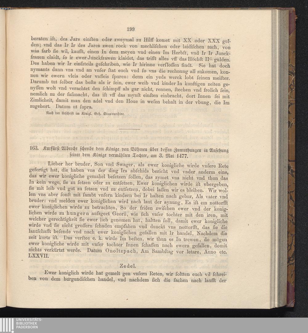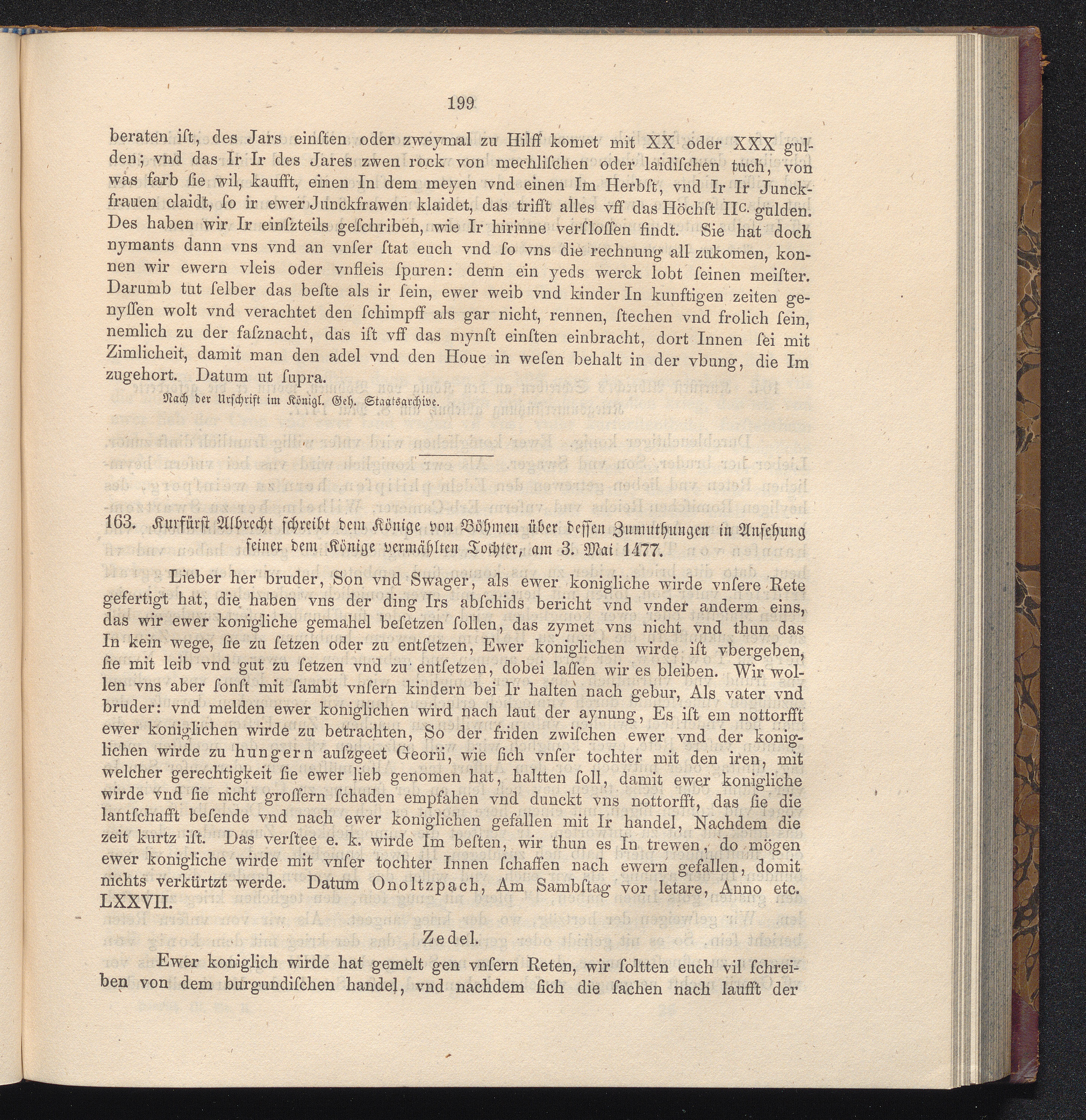 163. Kurfürst Albrecht schreibt dem Könige von Böhmen über dessen Zumuthungen in[...]