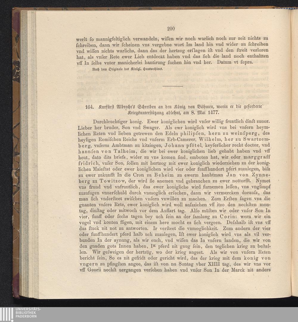 164. Kurfürst Albrecht's Schreiben an den König von Böhmen, worin er die geforderte[...]