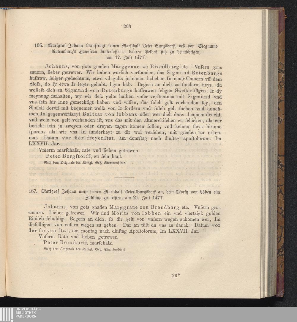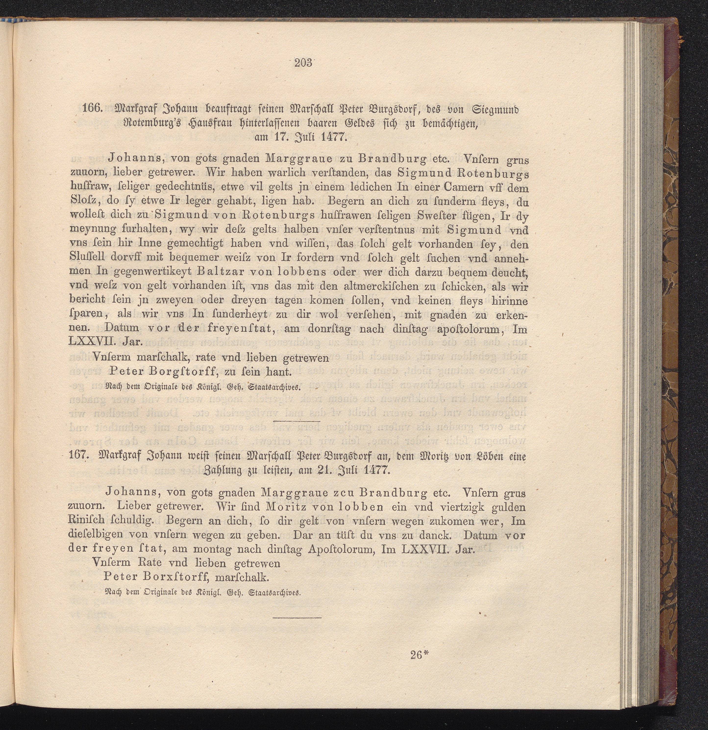 166. Markgraf Johann beauftragt seinen Marschall Peter Burgsdorf, des von Siegmund[...]