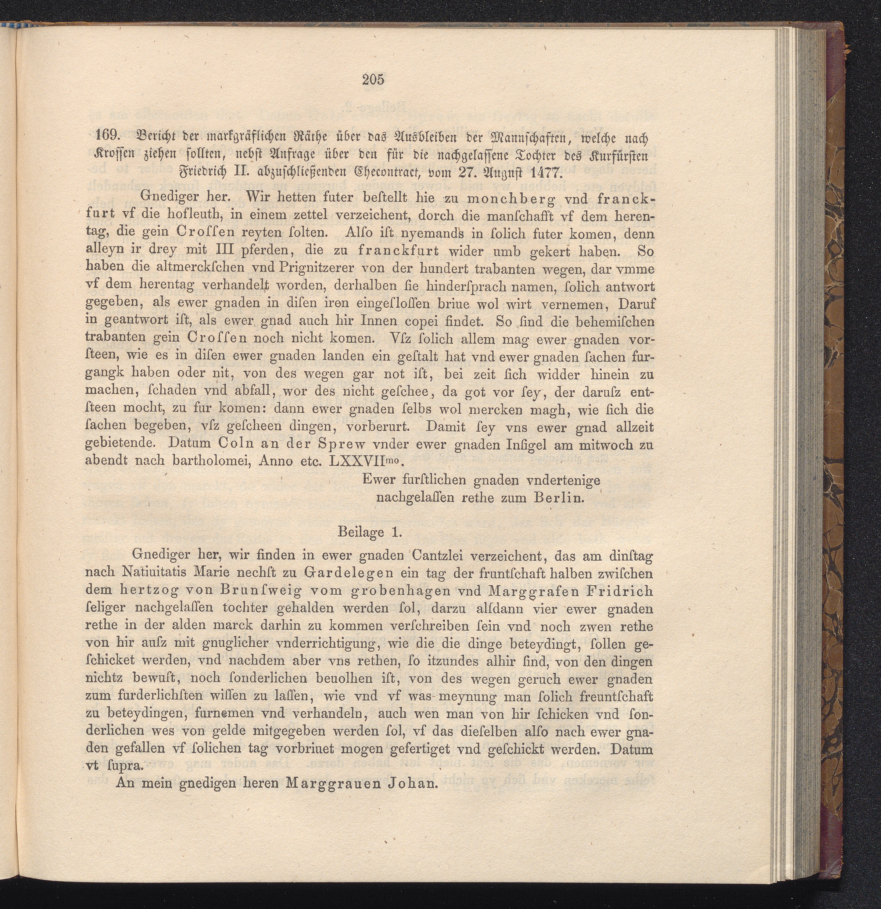 169. Bericht des märkischen Räthe über das Ausbleiben der Mannschaften, welche nach[...]