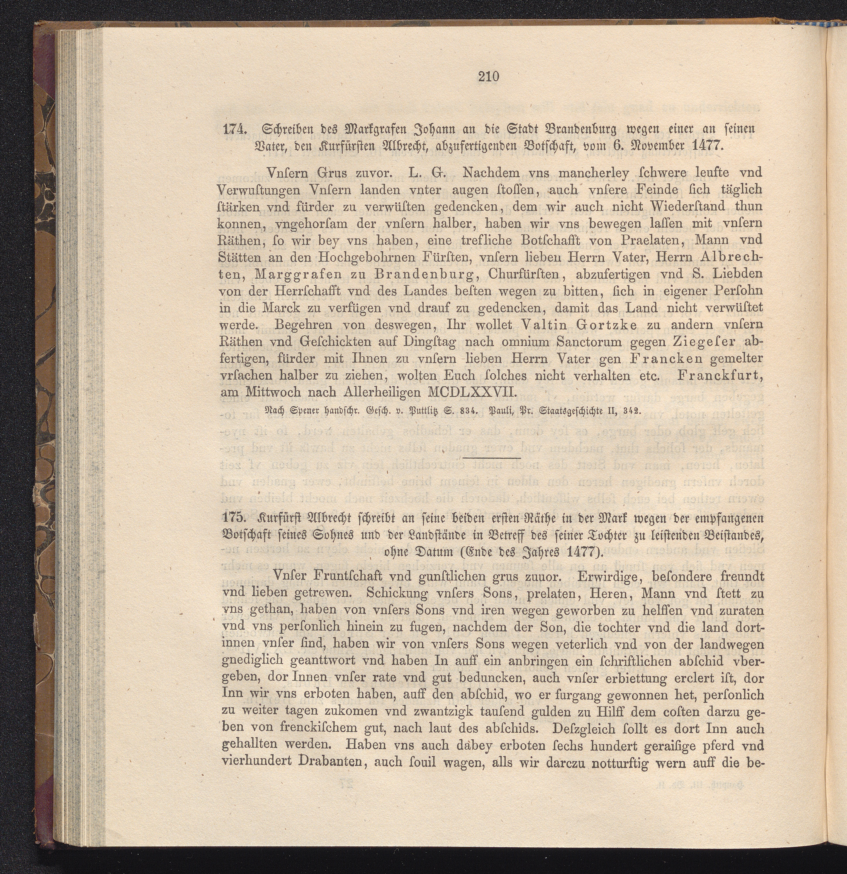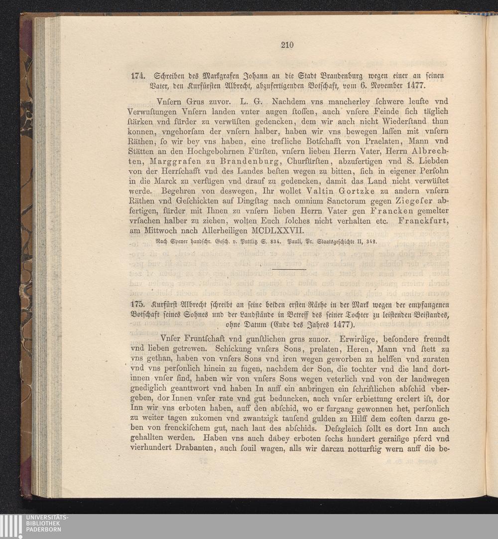 174. Schreiben des Markgrafen Johann an die Stadt Brandenburg wegen einer an seinen[...]
