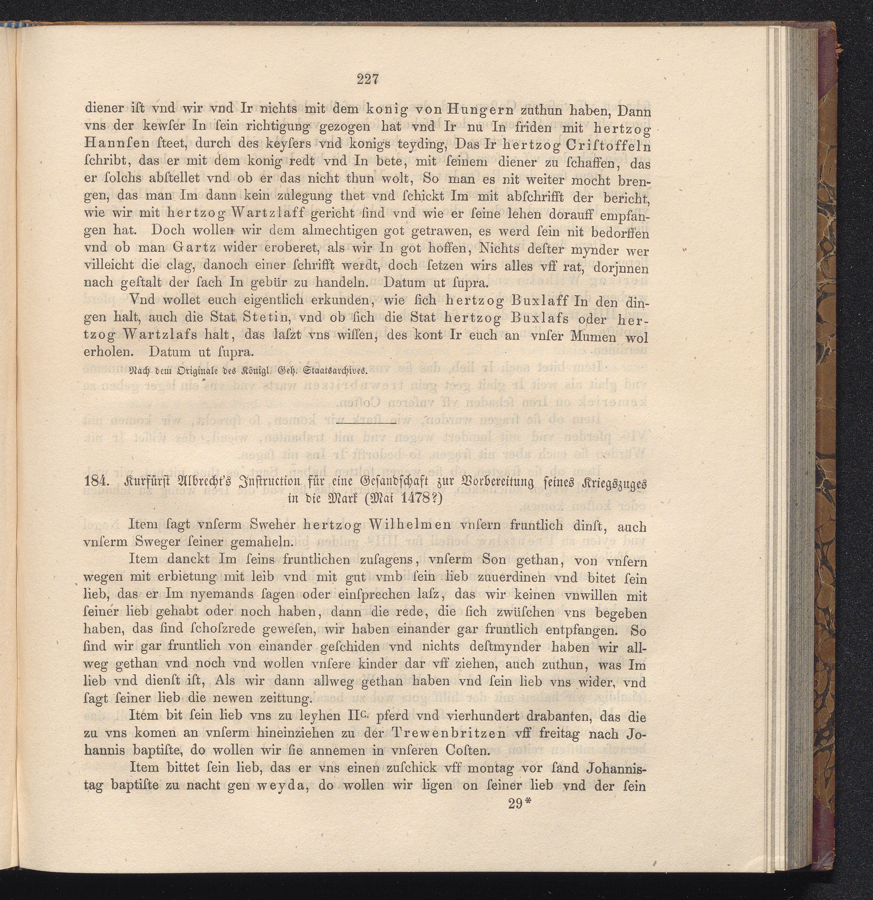 184. Kurfürst Albrecht's Instruction für eine Gesandschaft zur Vorbereitung seines[...]