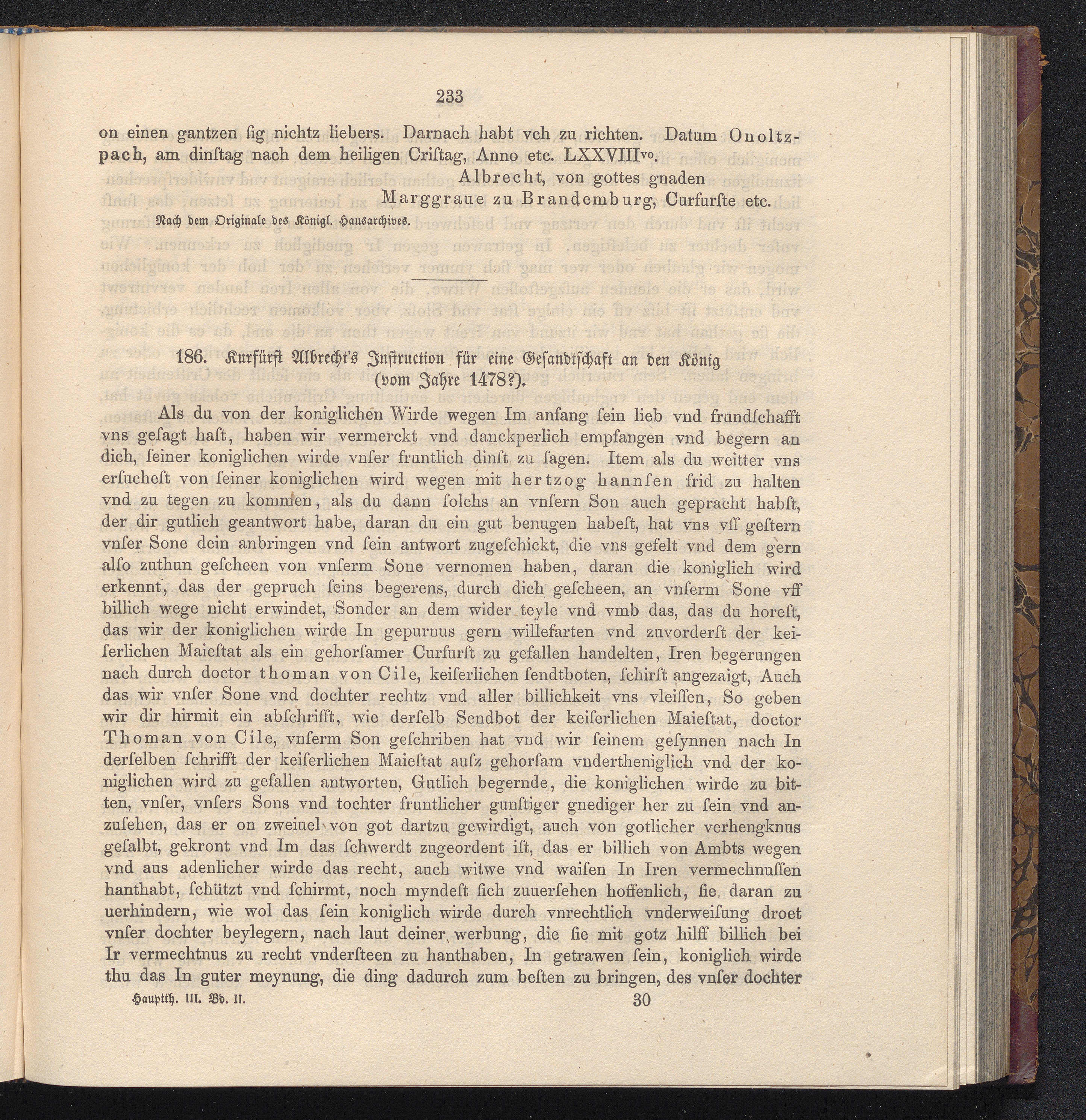 186. Kurfürst Albrecht's Instruction für eine Gesandschaft an den König (vom Jahre[...]