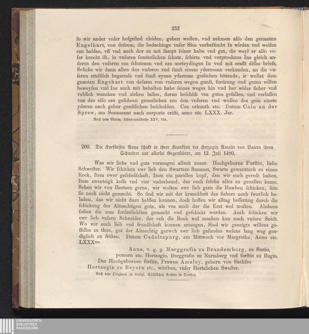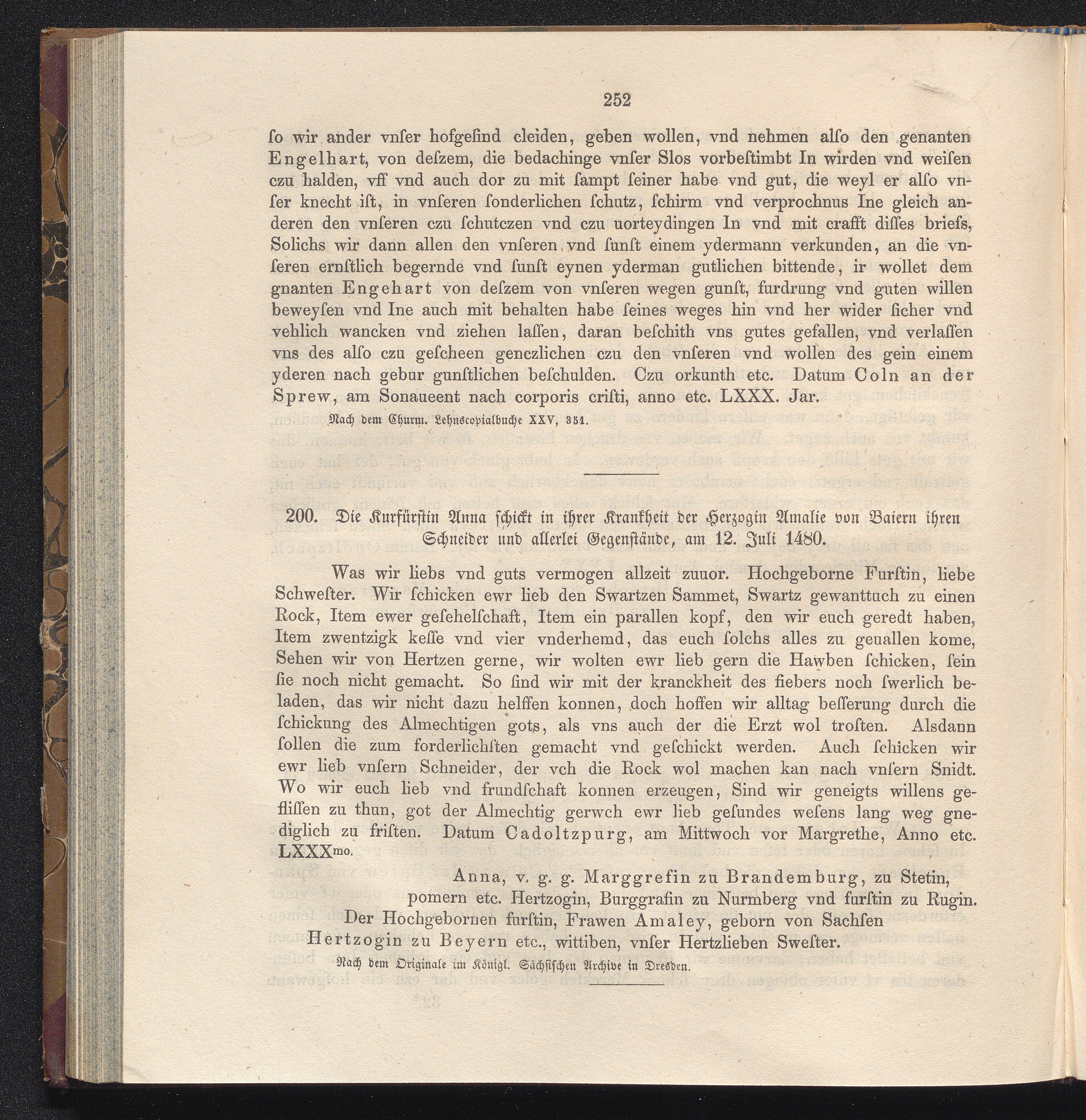 200. Die Kurfürstin Anna schickt in ihrer Krankheit der Herzogin Amalie von Baiern[...]