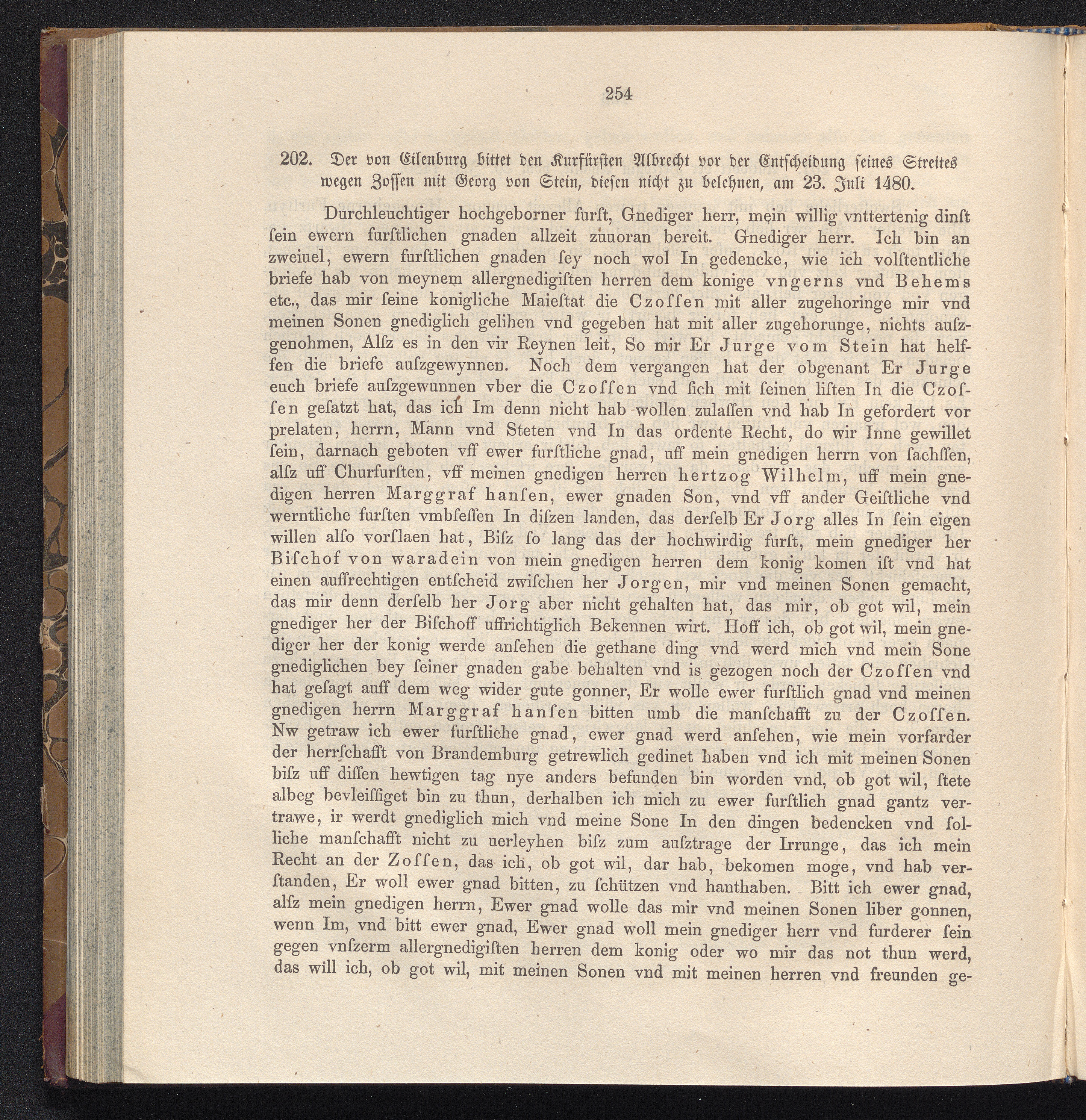 202. Der von Eilenburg bittet den Kurfürsten Albrecht vor der Entscheidung seines[...]