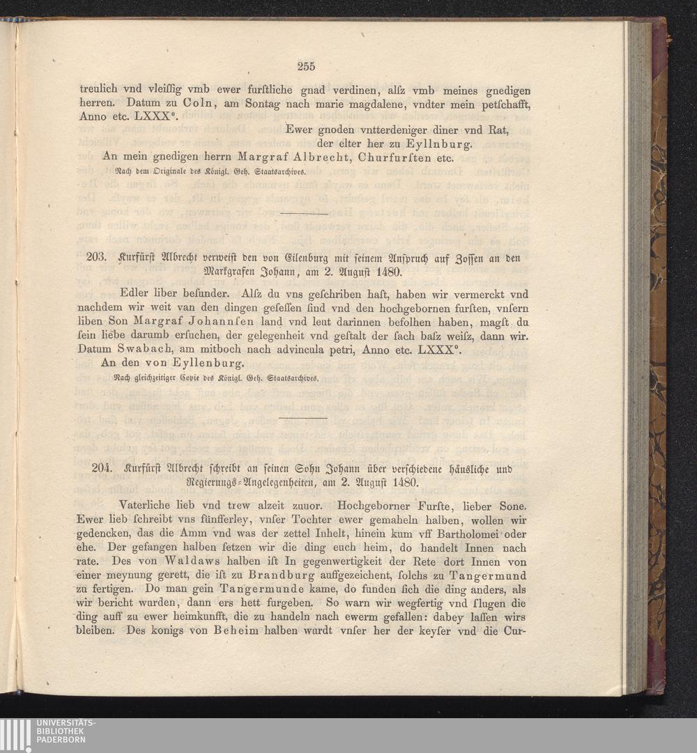 203. Kurfürst Albrecht verweist den von Eilenburg mit seinem Anspruch auf Zossen[...]