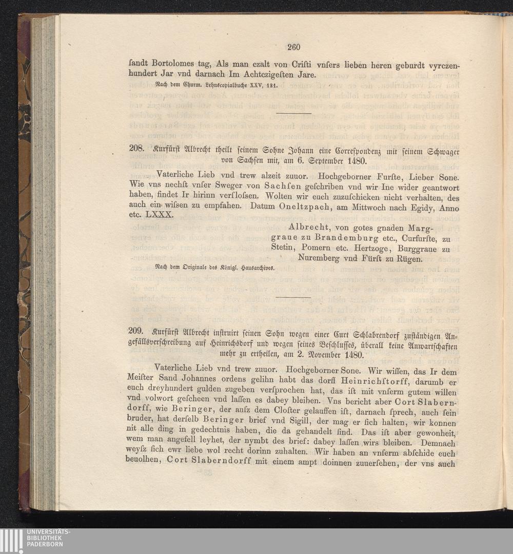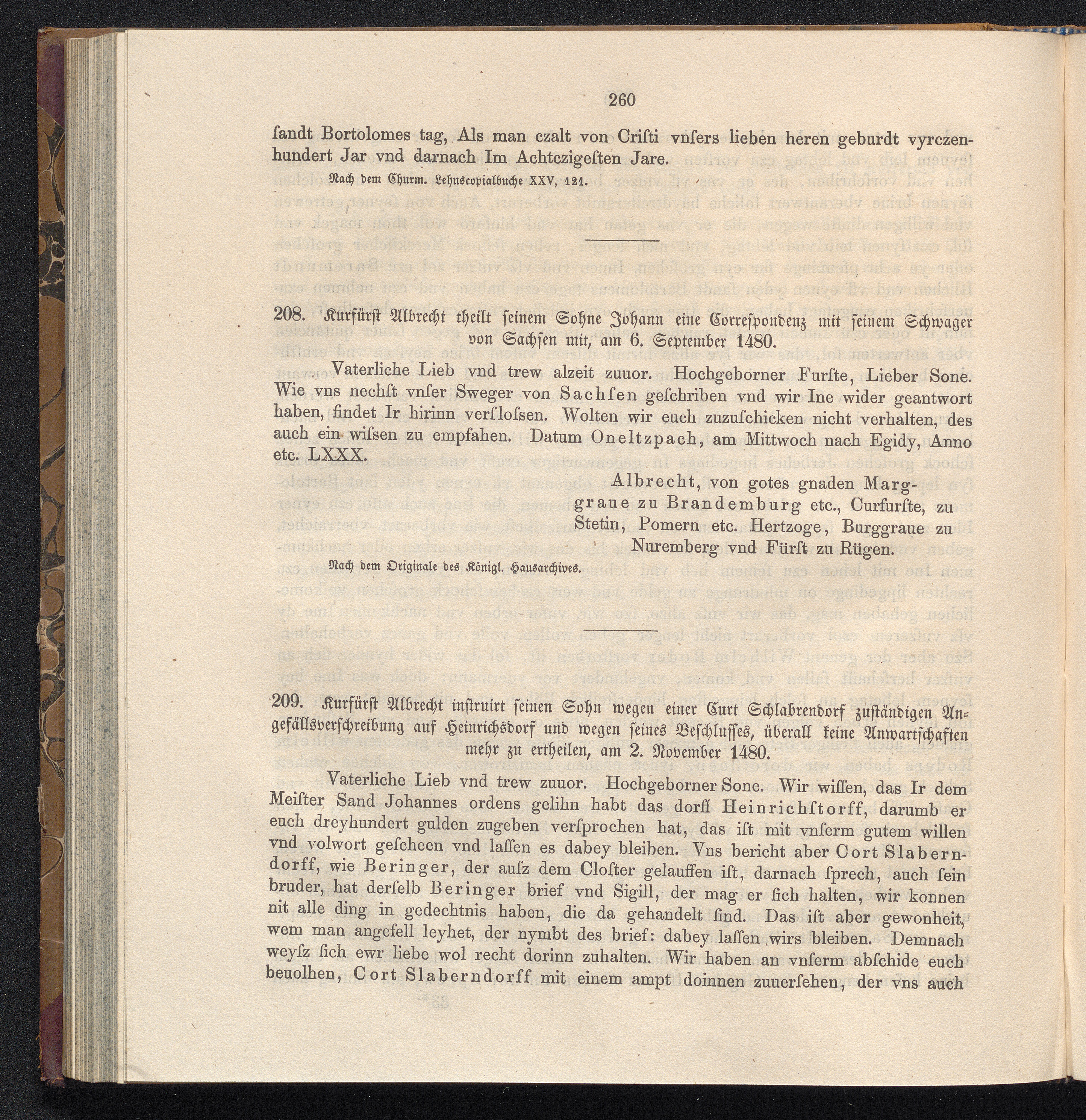 208. Kurfürst Albrecht theilt seinem Sohne Johann eine Correspondenz mit seinem Schwager[...]