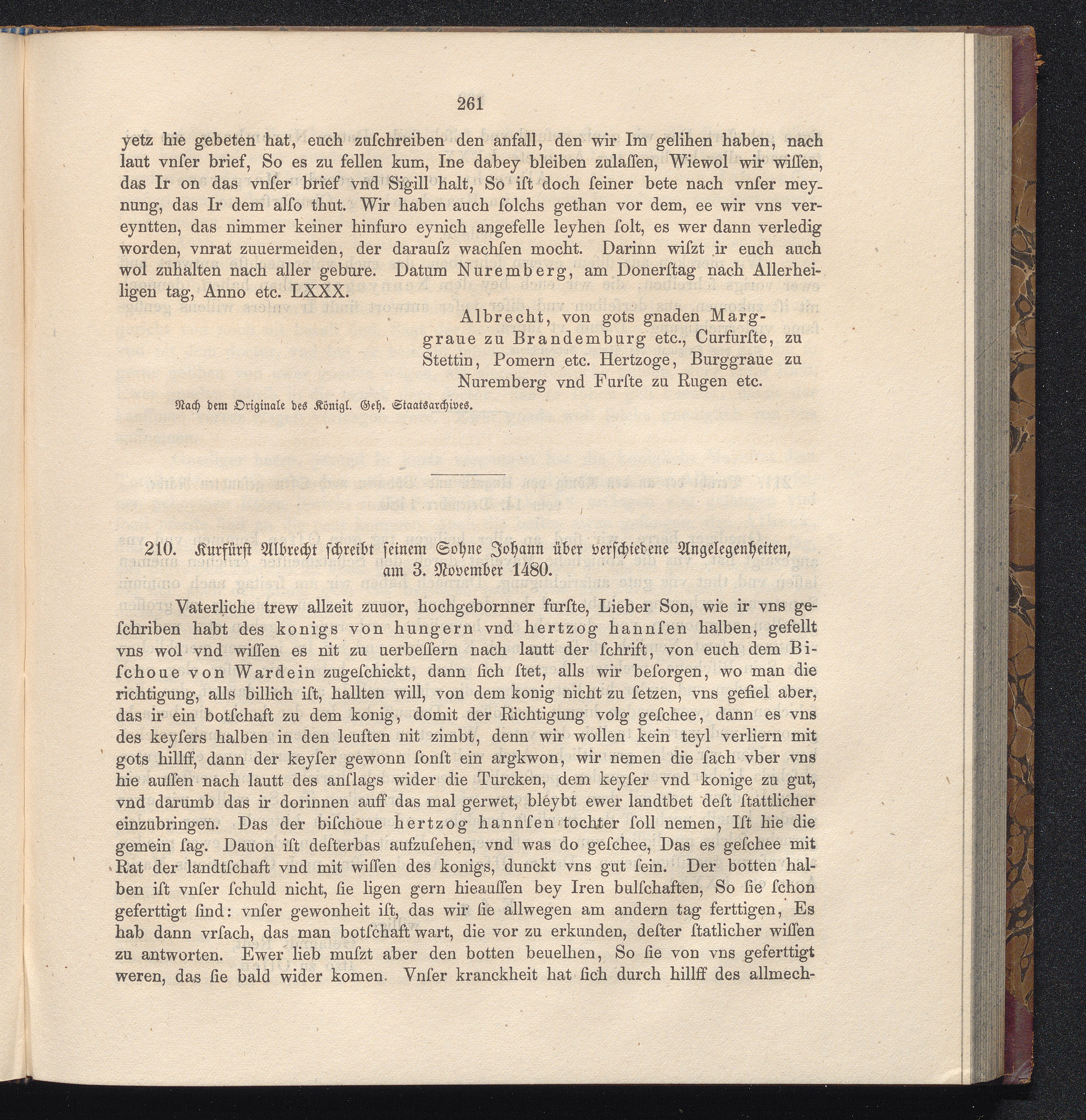 210. Kurfürst Albrecht schreibt seinem Sohne Johann über verschiedene Angelegenheiten,[...]