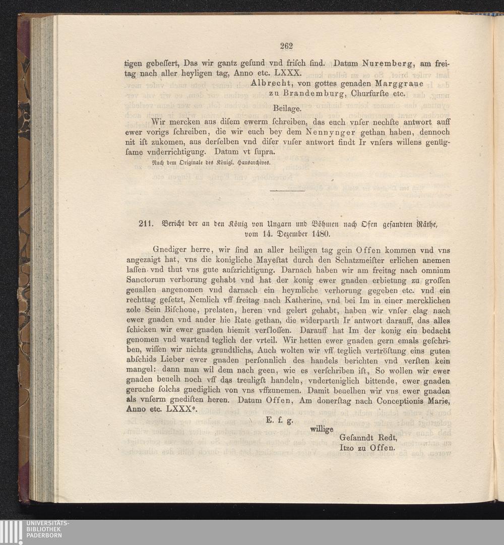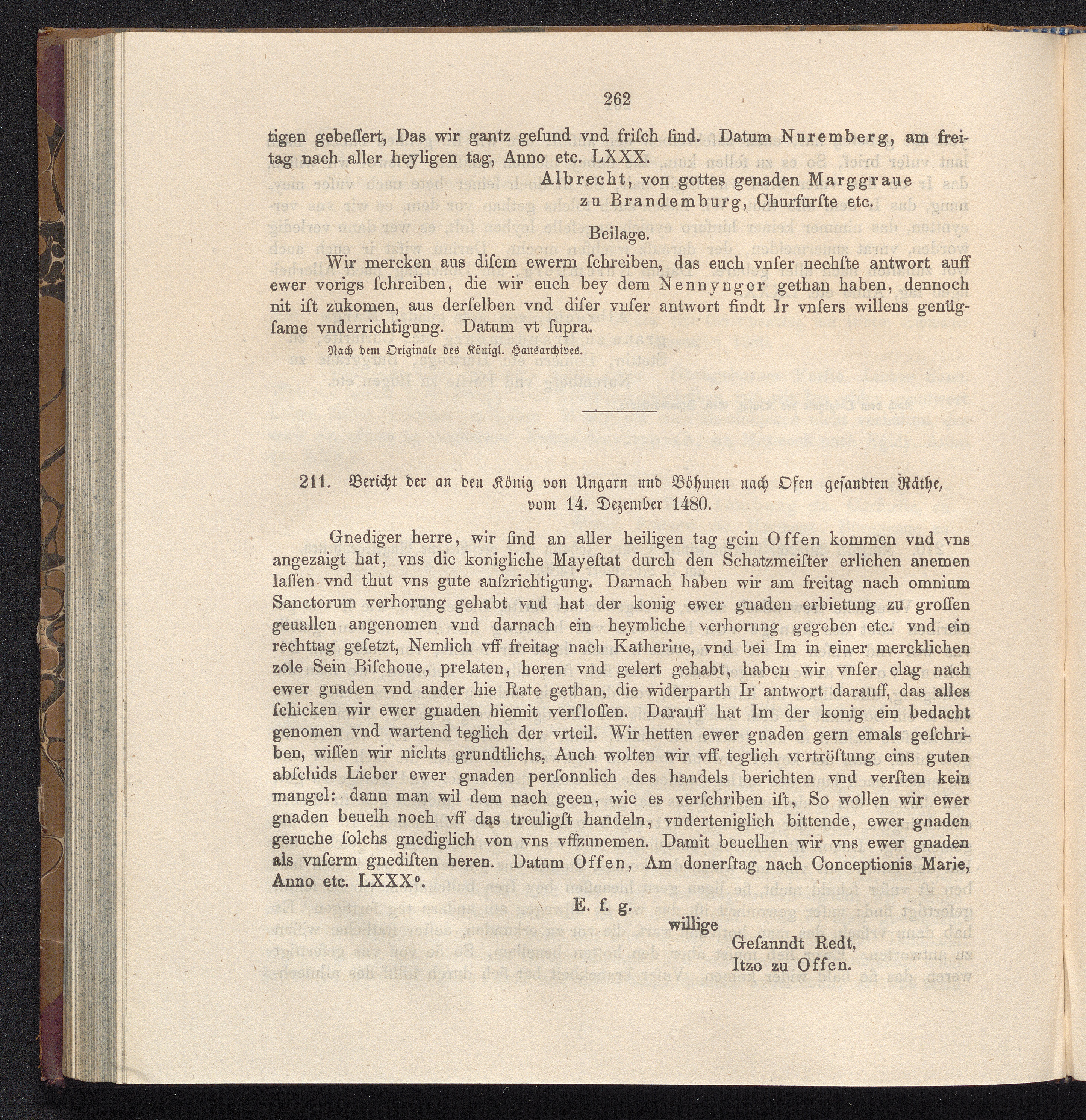 211. Bericht der an den König von Ungarn und Böhmen nach Osen gesandten Räthe, vom[...]