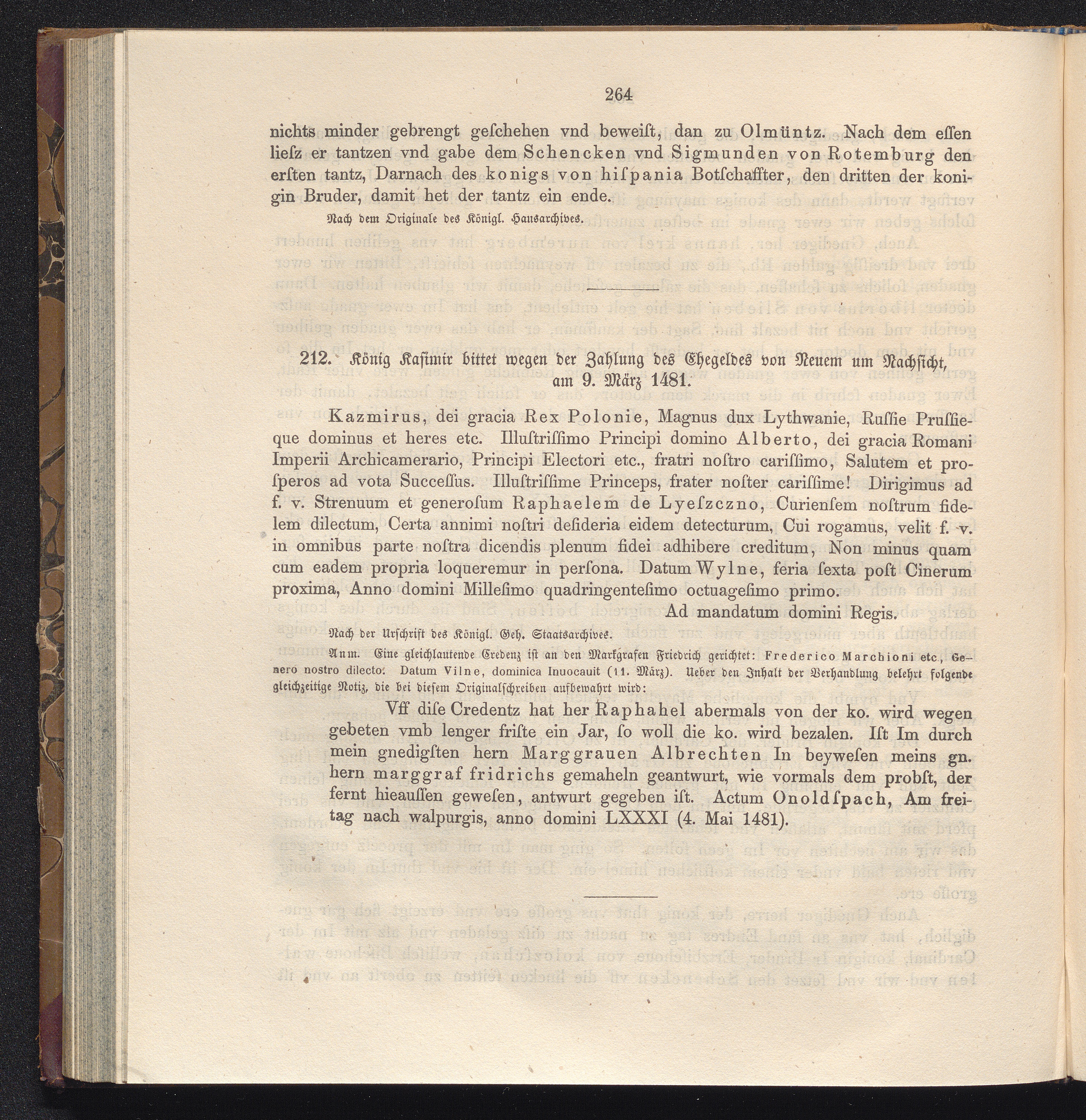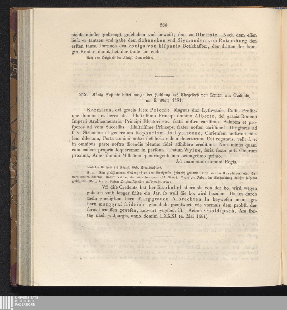 212. König Kasimir bittet wegen der Zahlung des Ehegeldes von Neuem um Nachsicht,[...]