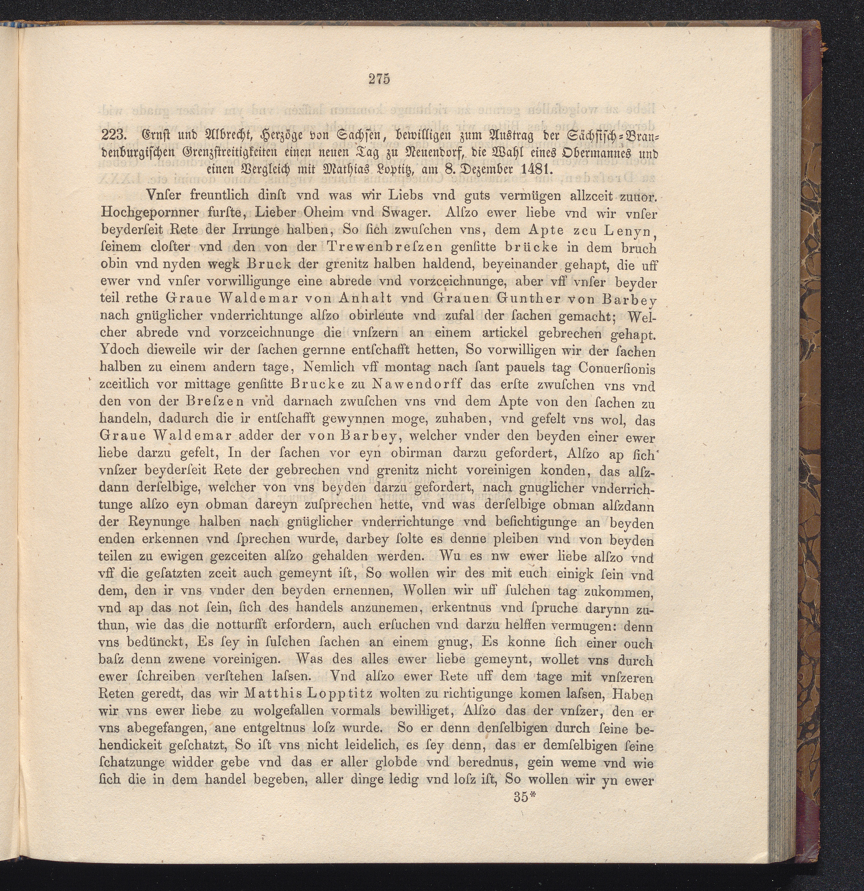 223. Ernst und Albrecht, Herzöge von Sachsen, bewilligen zum Austrag der Sächsisch-Brandenburgischen[...]