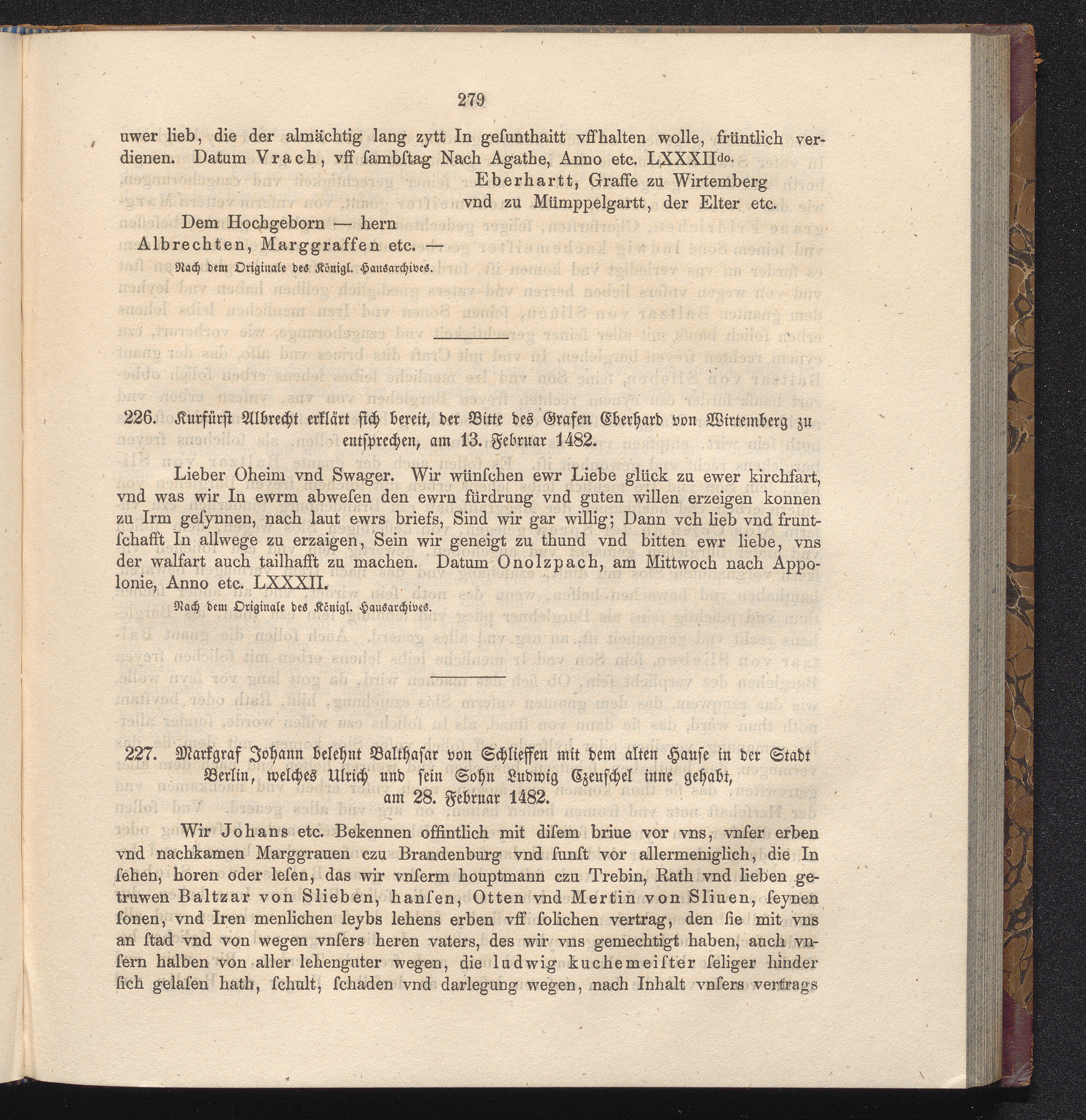 226. Kurfürst Albrecht erklärt sich bereit, der Bitte des Grafen Eberhard von Wirtemberg[...]