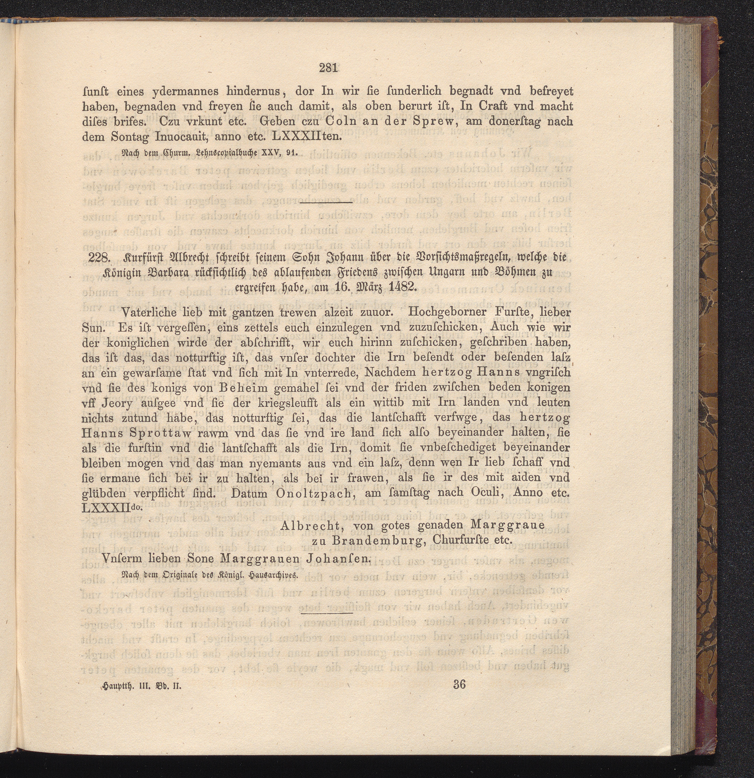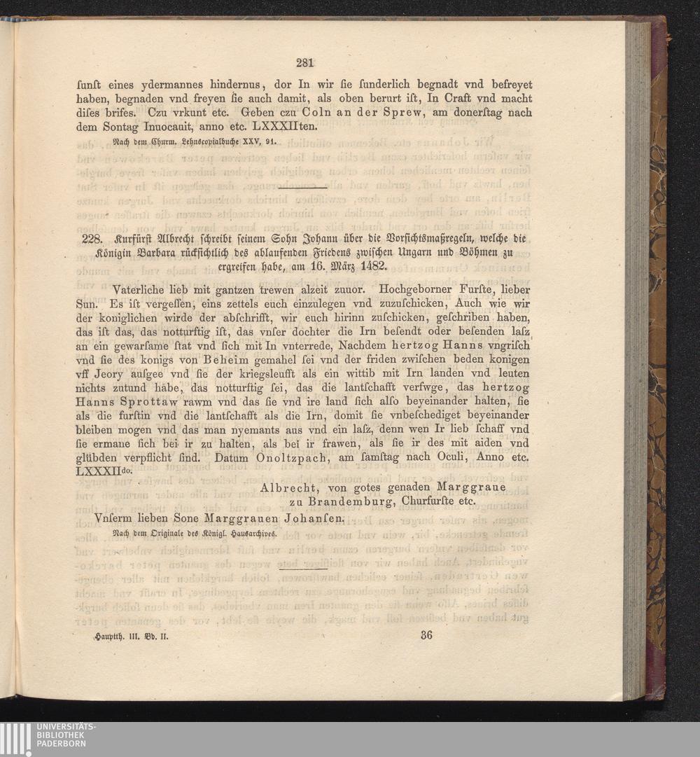 228. Kurfürst Albrecht schreibt seinem Sohn Johann über die Vorsichtsmaßregeln, welche[...]