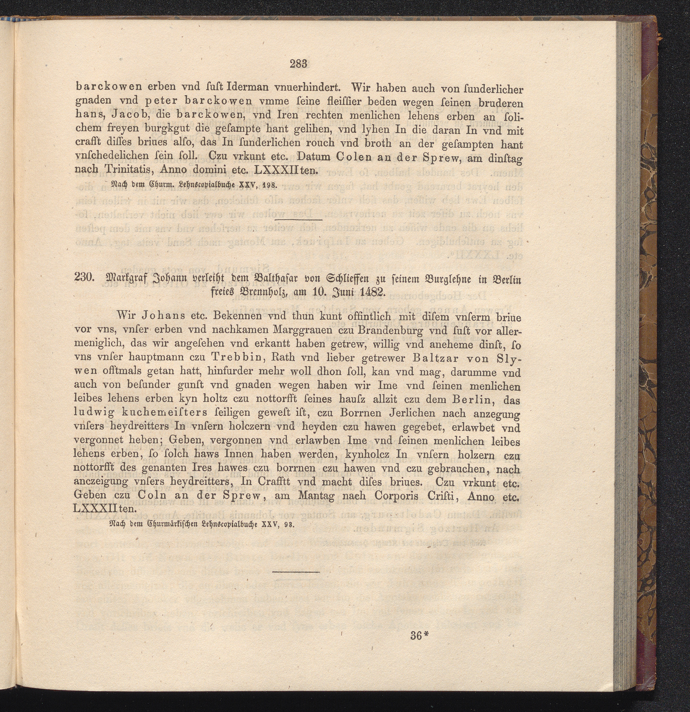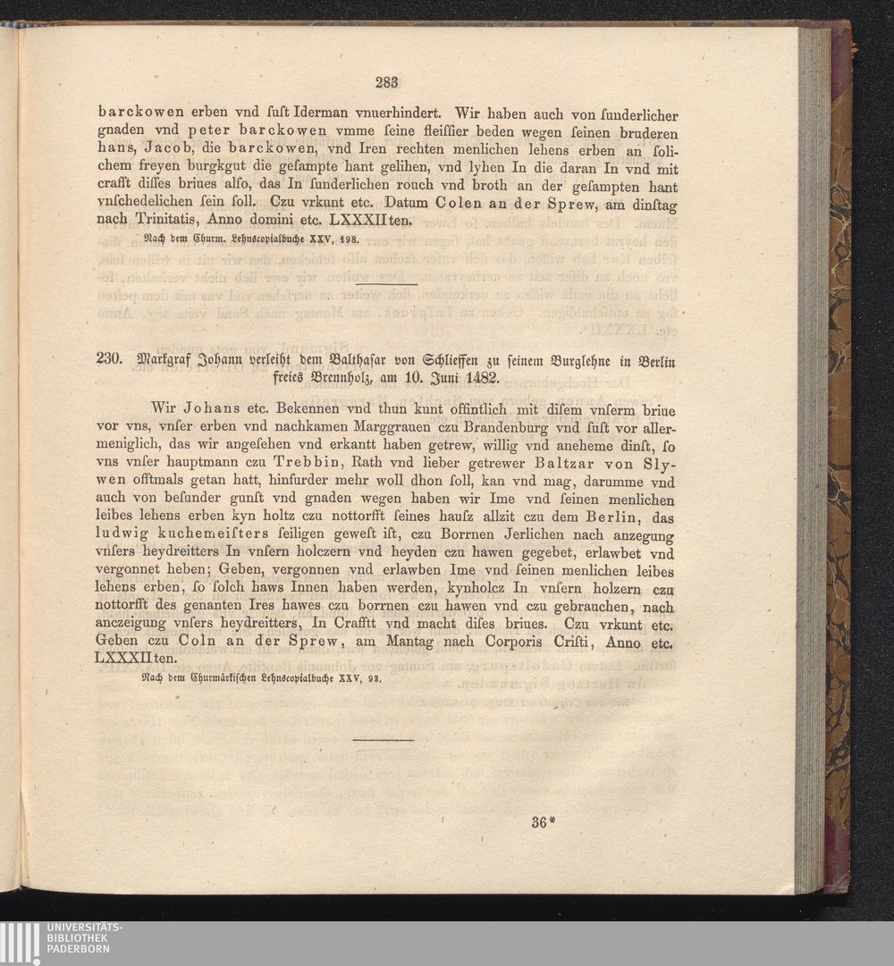 230. Markgraf Johann verleiht dem Balthasar von Schlieffen zu seinem Burglehne in[...]