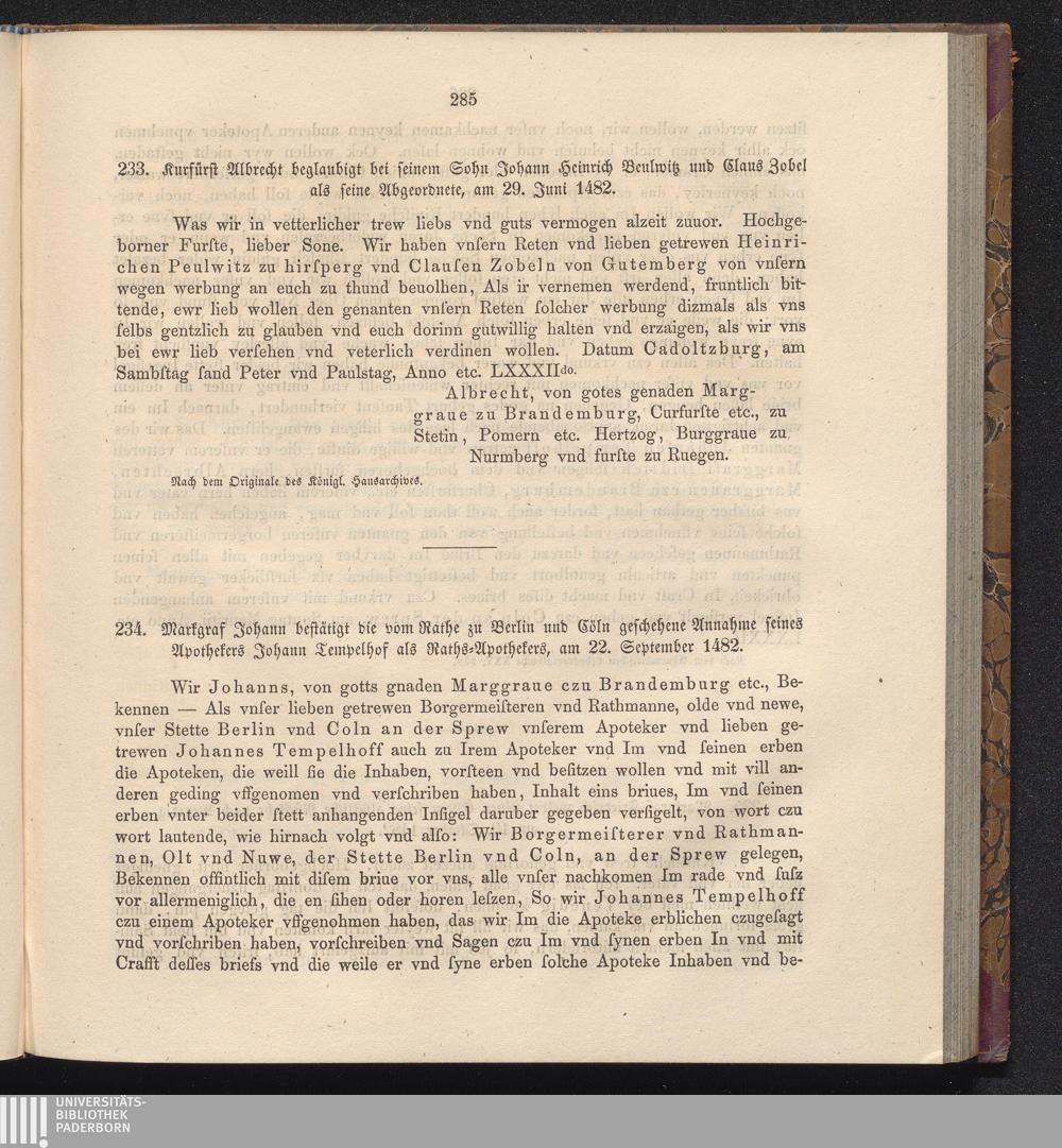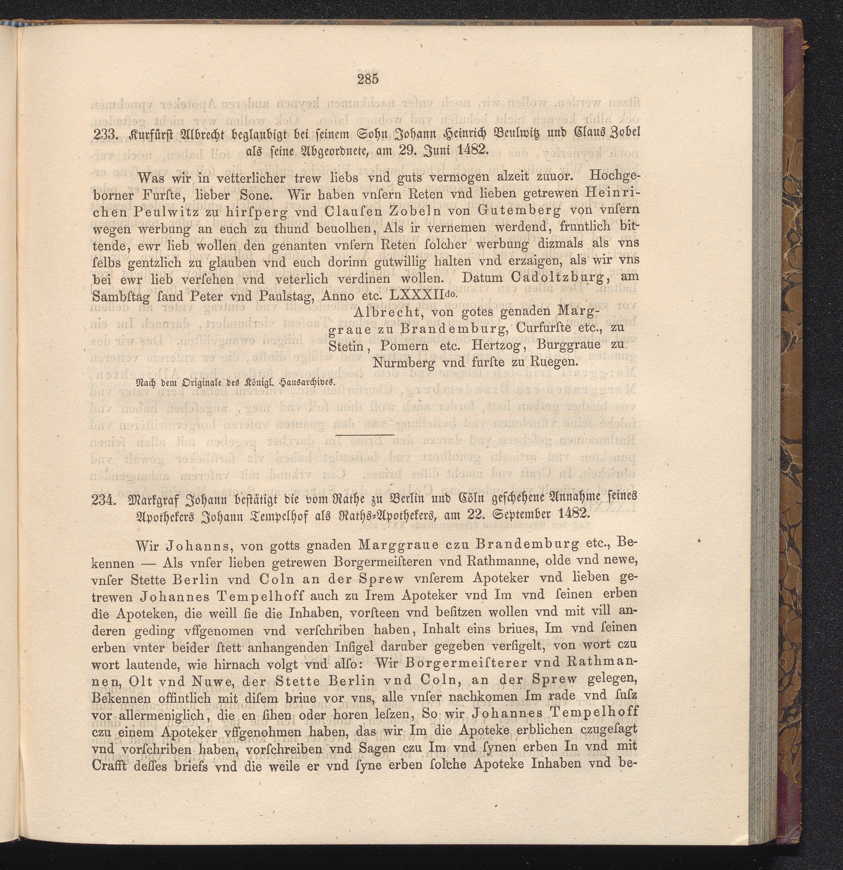233. Kurfürst Albrecht beglaubigt bei seinem Sohn Johann Heinrich Beulwitz und Claus[...]