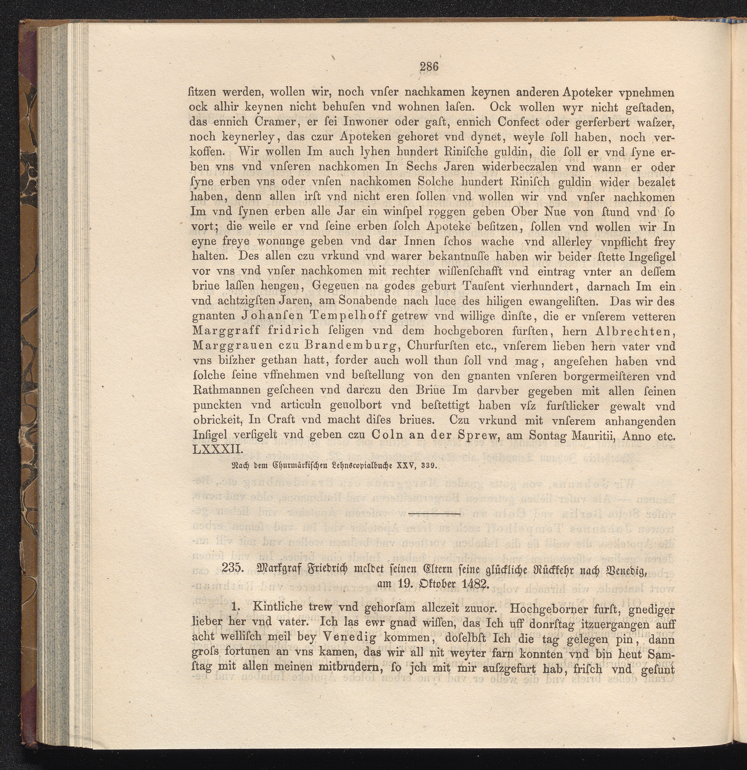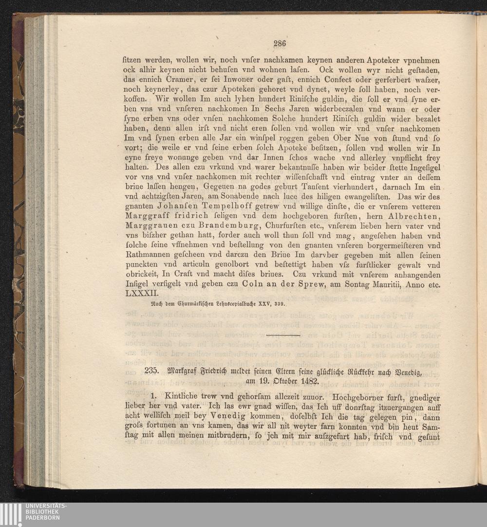 235. Markgraf Friedrich meldet seinen Eltern seine glückliche Rückkehr nach Venedig,[...]