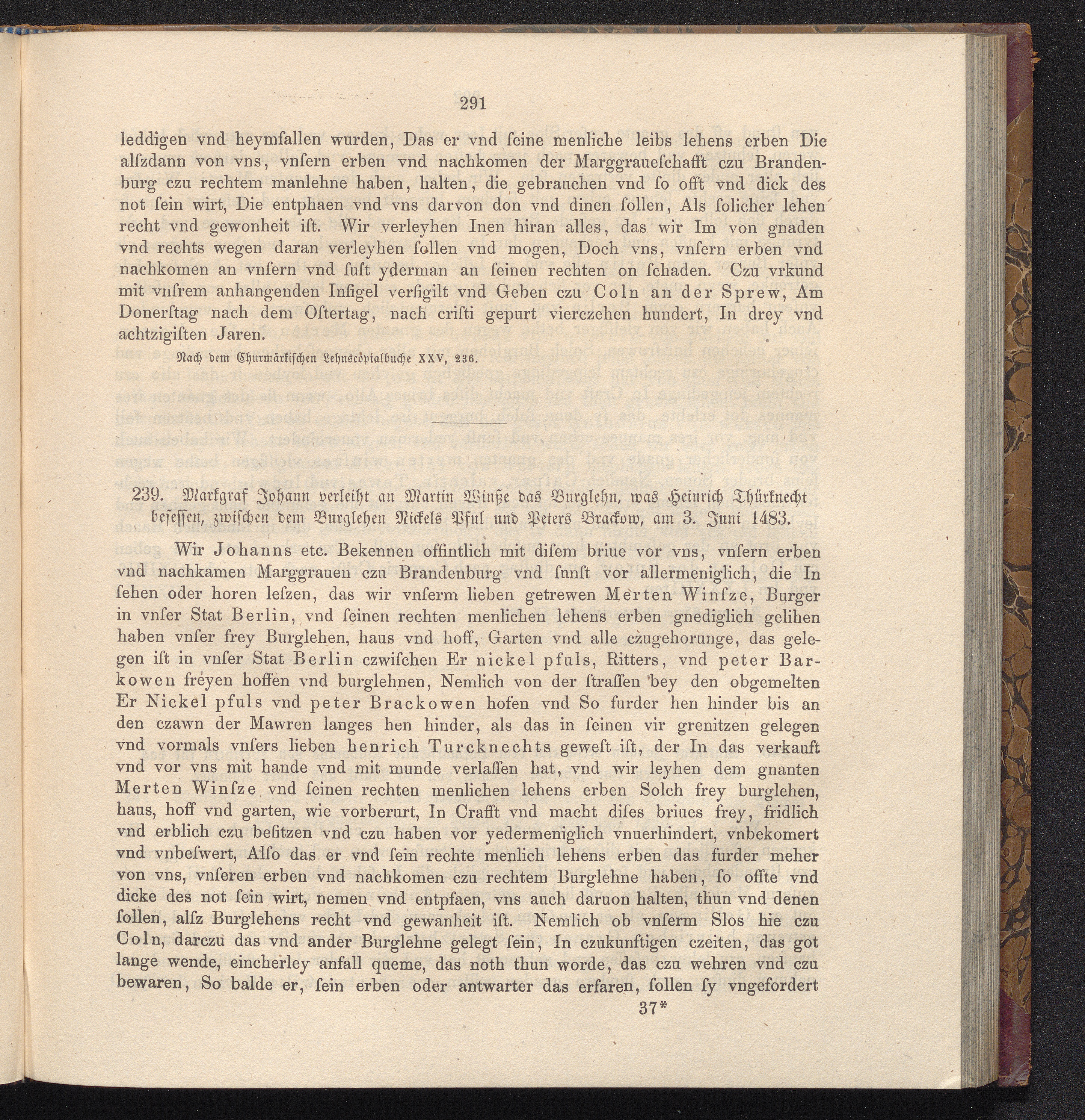 239. Markgraf Johann verleiht an Martin Wintze das Burglehn, was Heinrich Thürknecht[...]