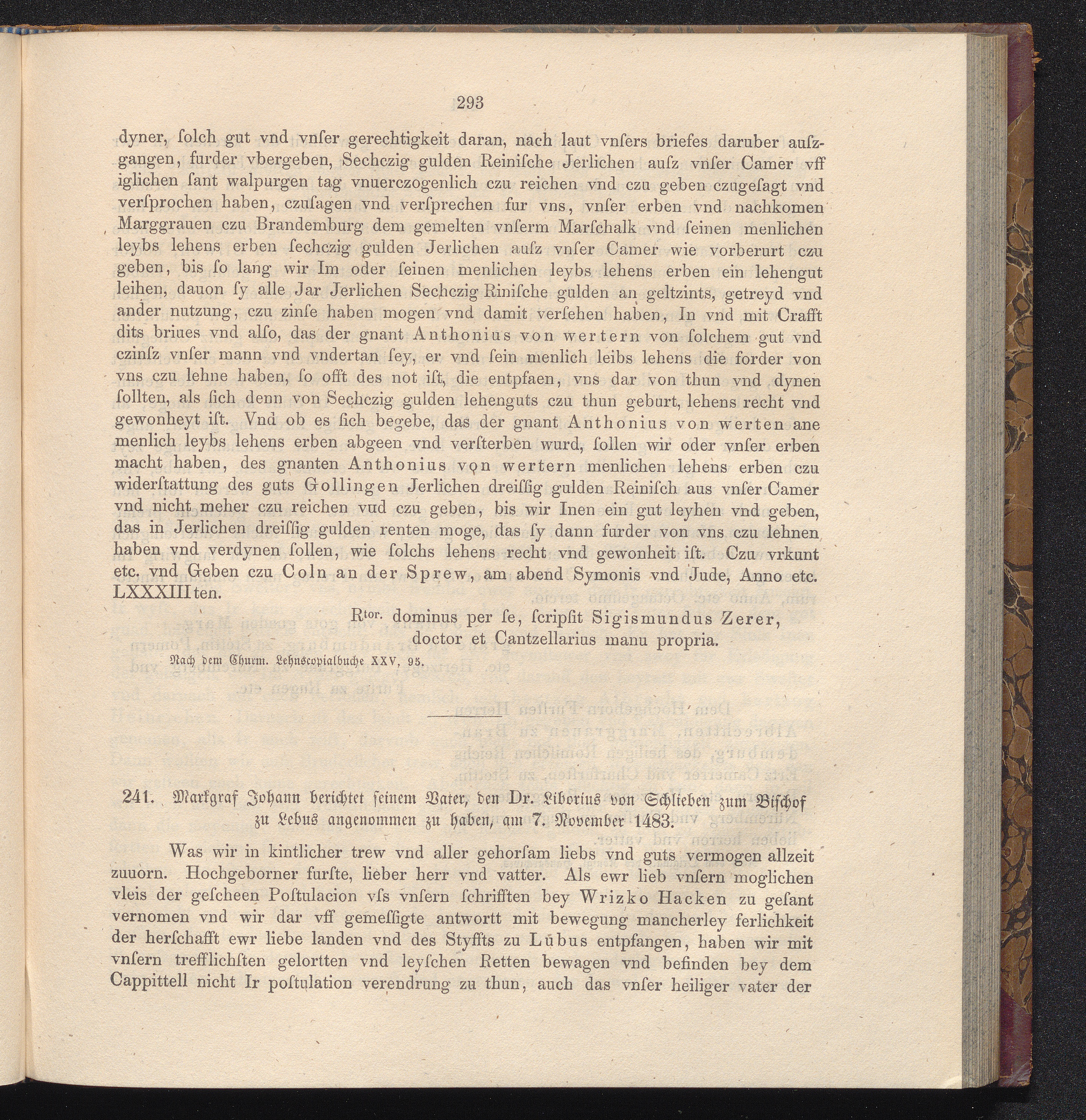 241. Markgraf Johann berichtet seinem Vater, den Dr. Liborius von Schlieben zum Bischof[...]