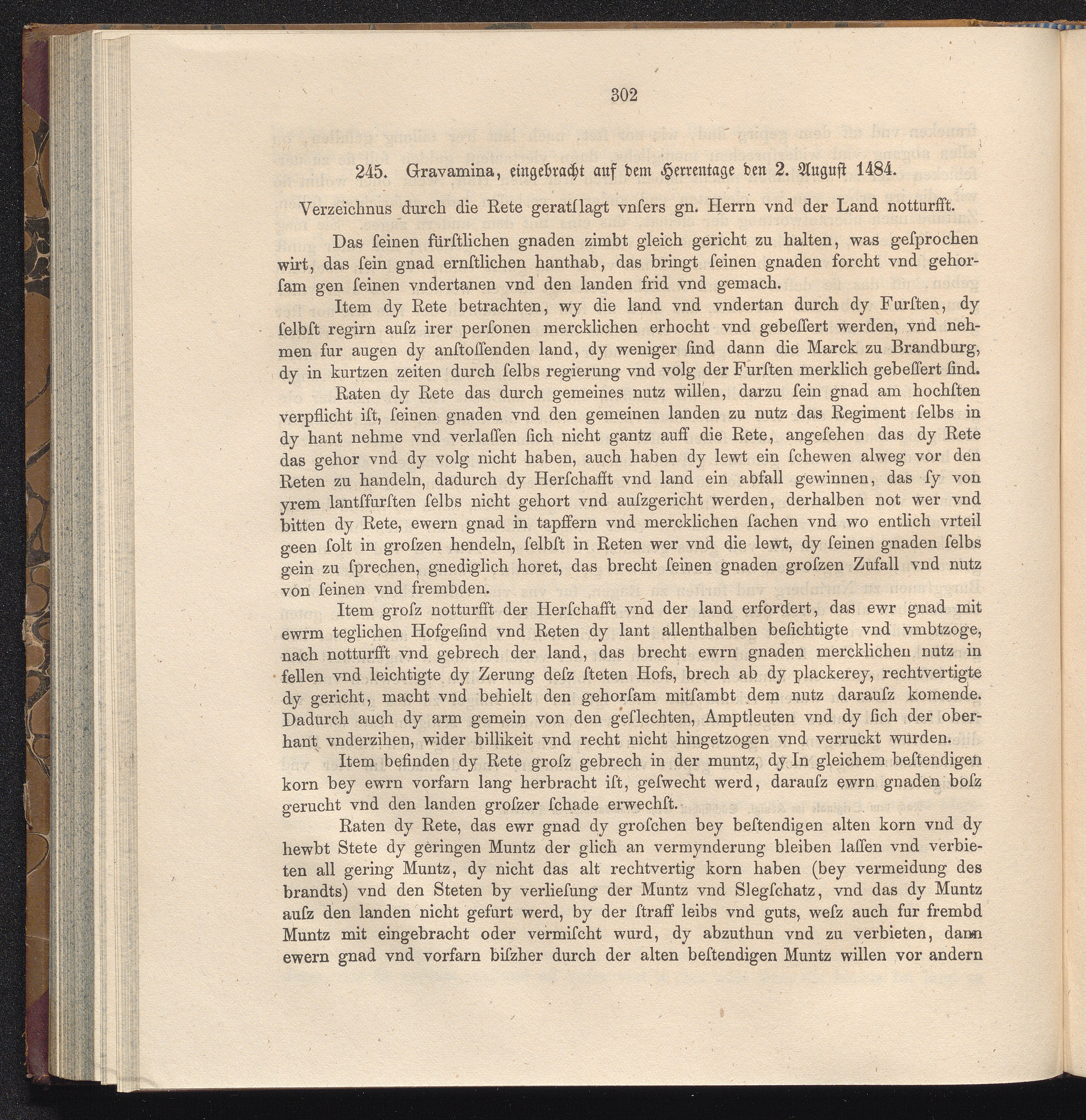 245. Gravamina, eingebracht auf dem Herrentage den 2. August 1484.