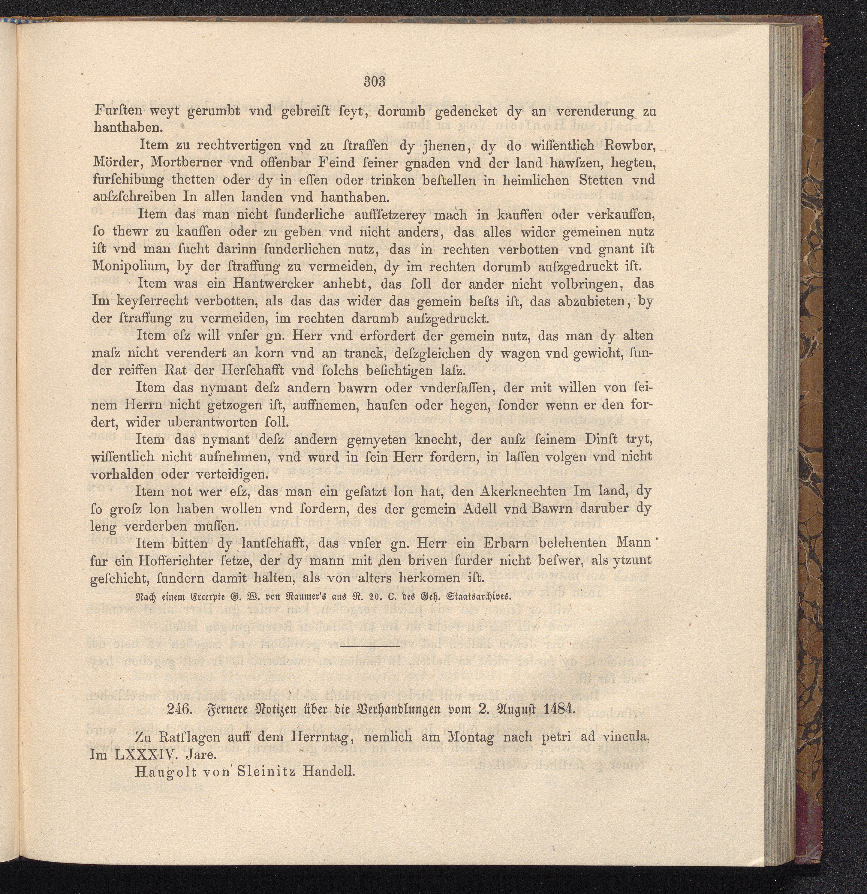 246. Fernere Notizen über die Verhandlungen vom 2. August 1484.